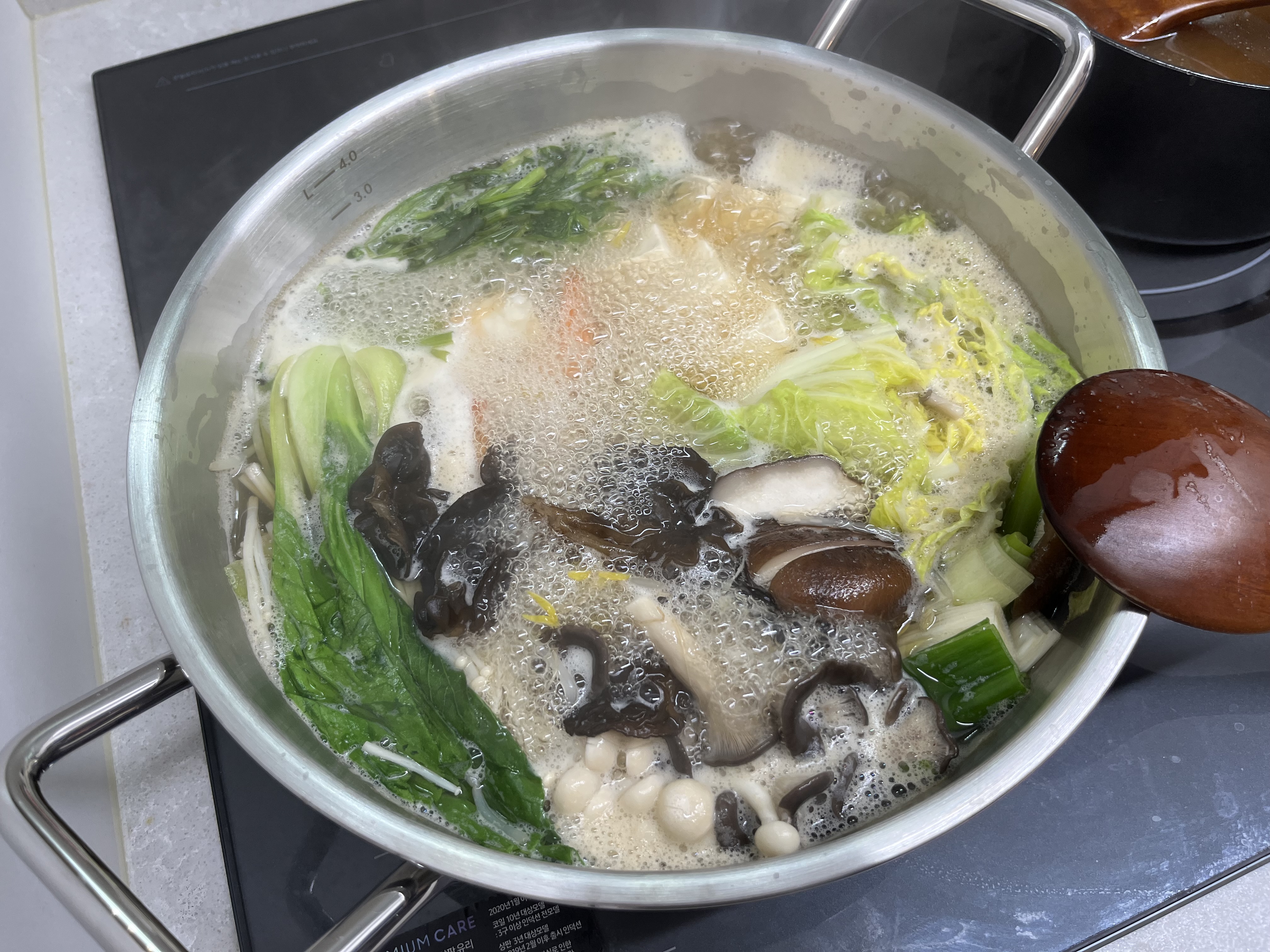 냄비에 야채와 육수가 팔팔 끓기 시작한다.