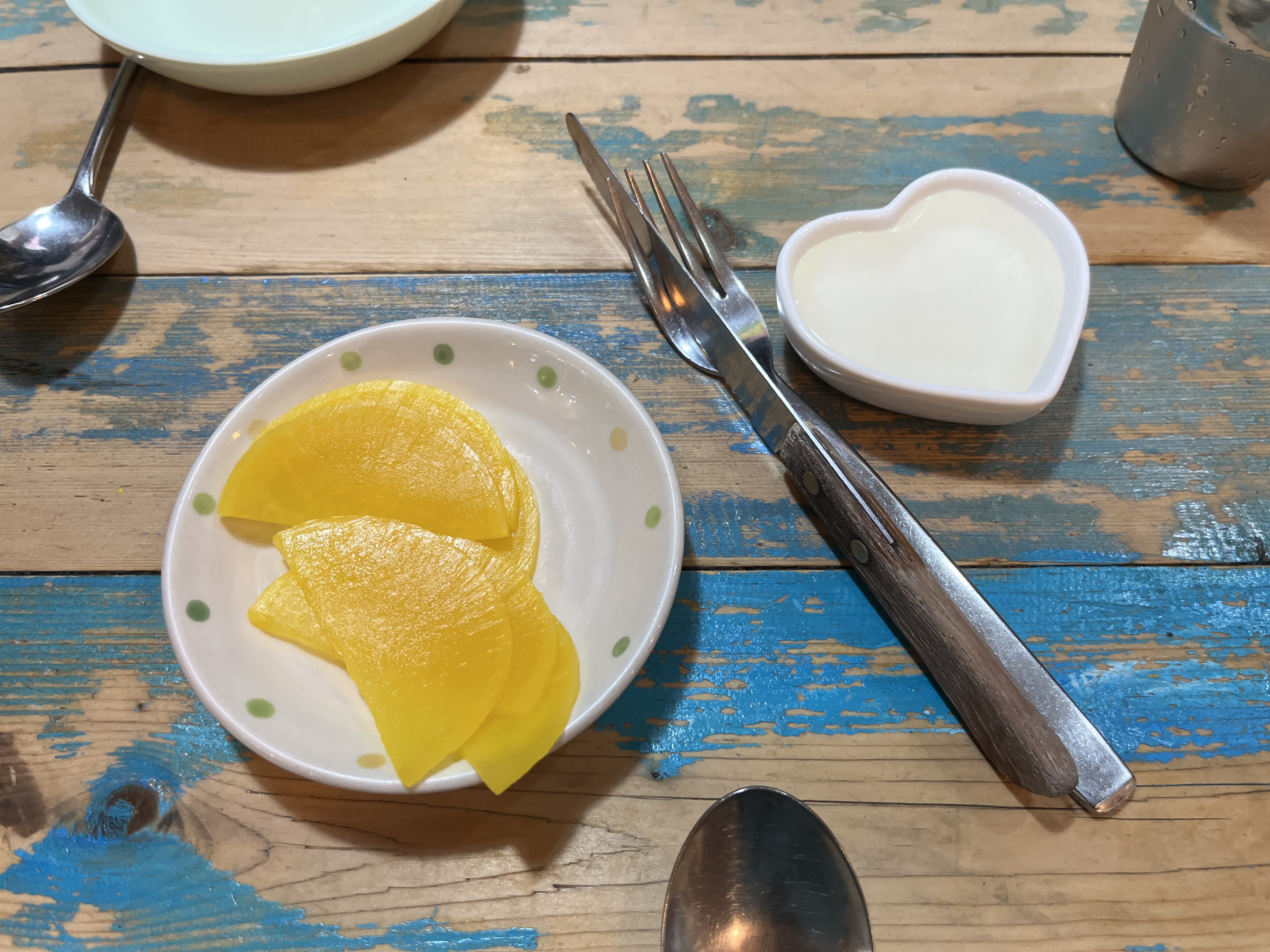 처음에 기본으로 주는 거 외에 추가 식기나 단무지는 주방 앞 테이블에서 챙기면 된다.