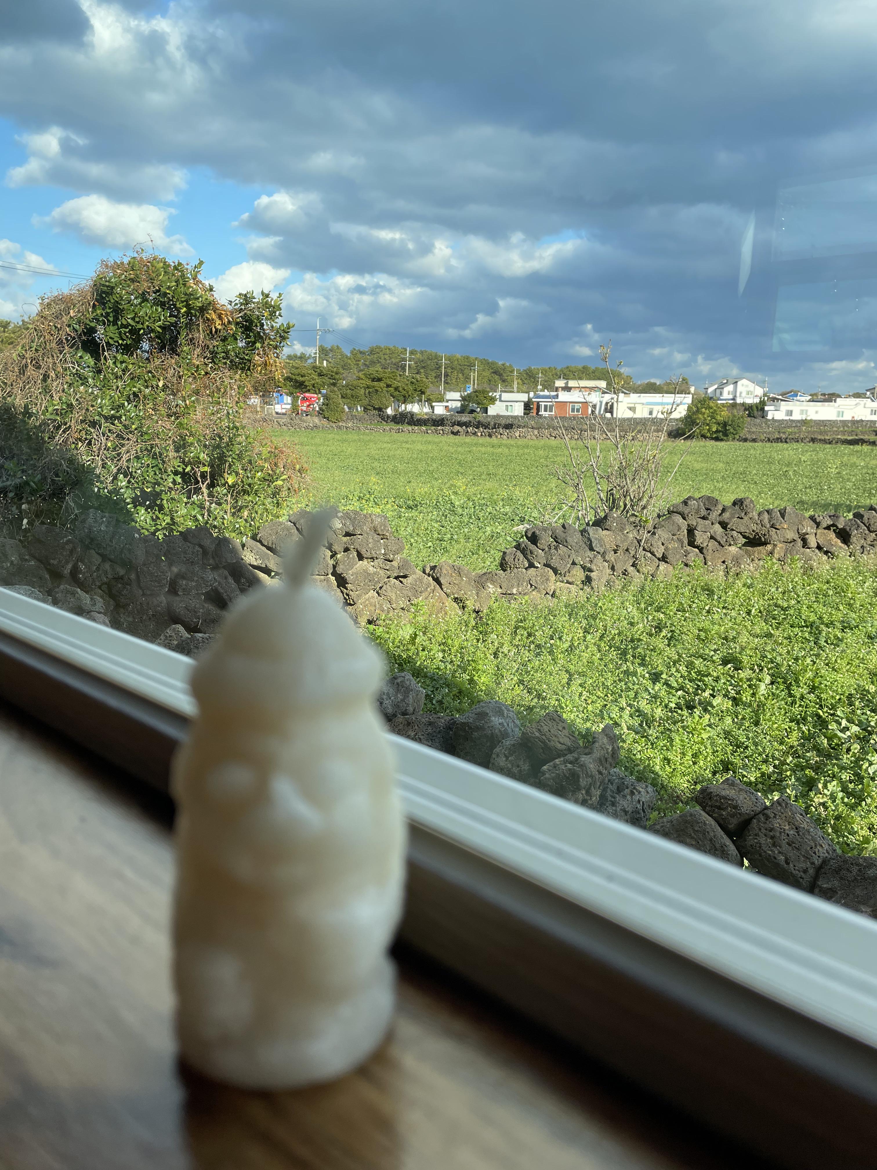 창 한쪽엔 하르방 모양 초가 있었다.