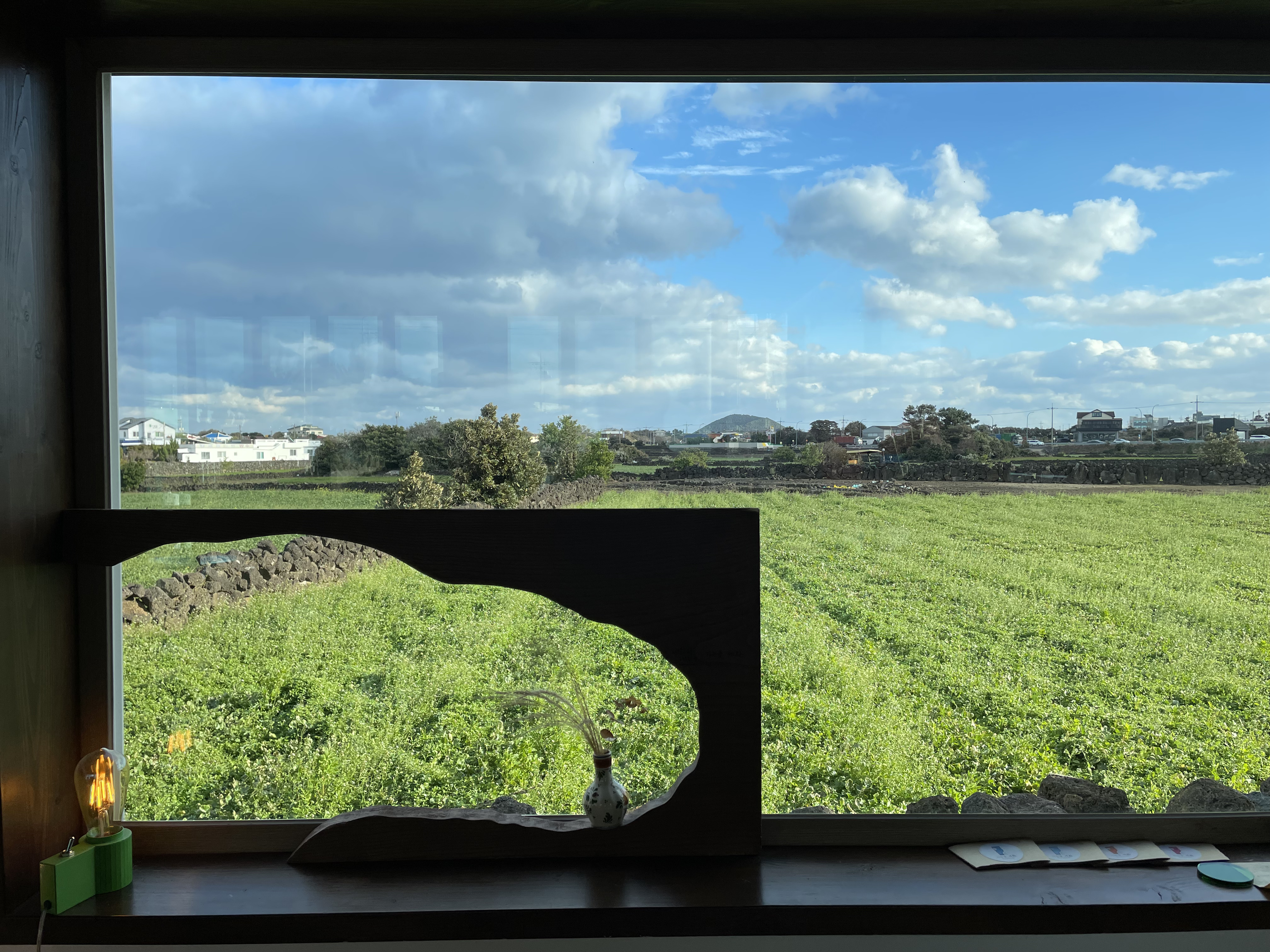 일부러 큰 창 앞에 자리를 잡았다.