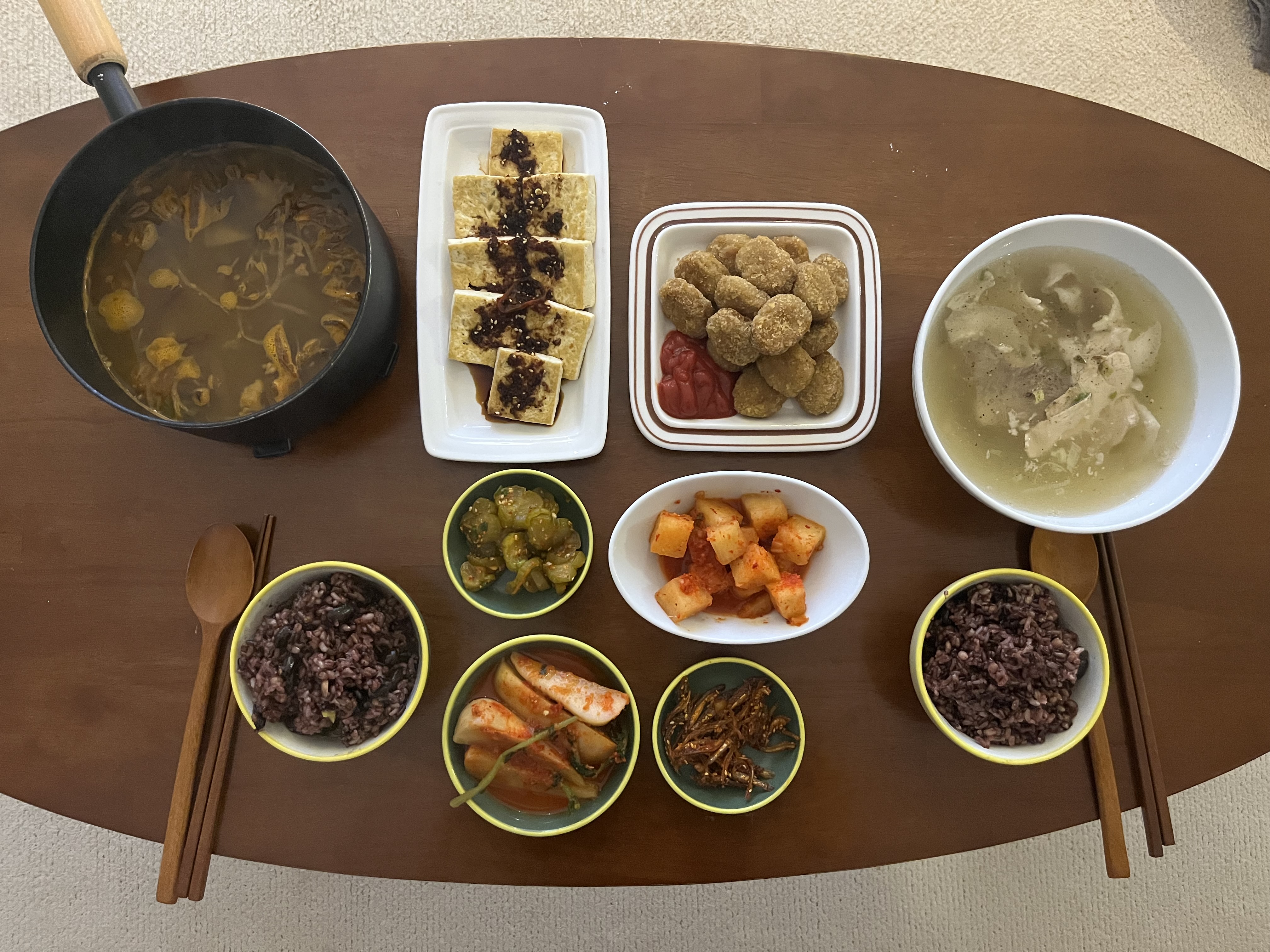 육개장, 양념두부구이, 꼬마돈까스
