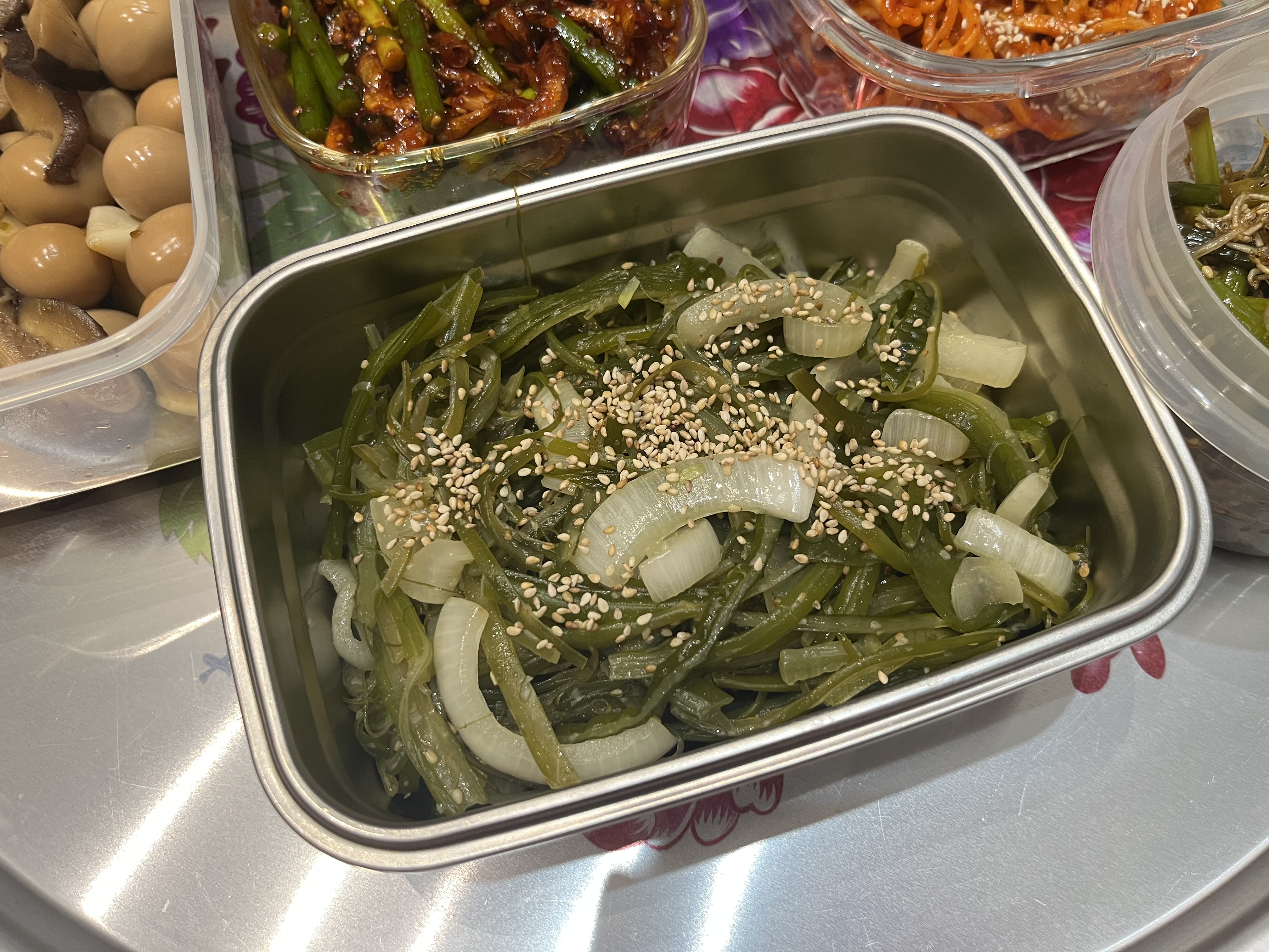 미역줄기를 잘 다음고 먹기 좋은 크기로 잘라준다.
