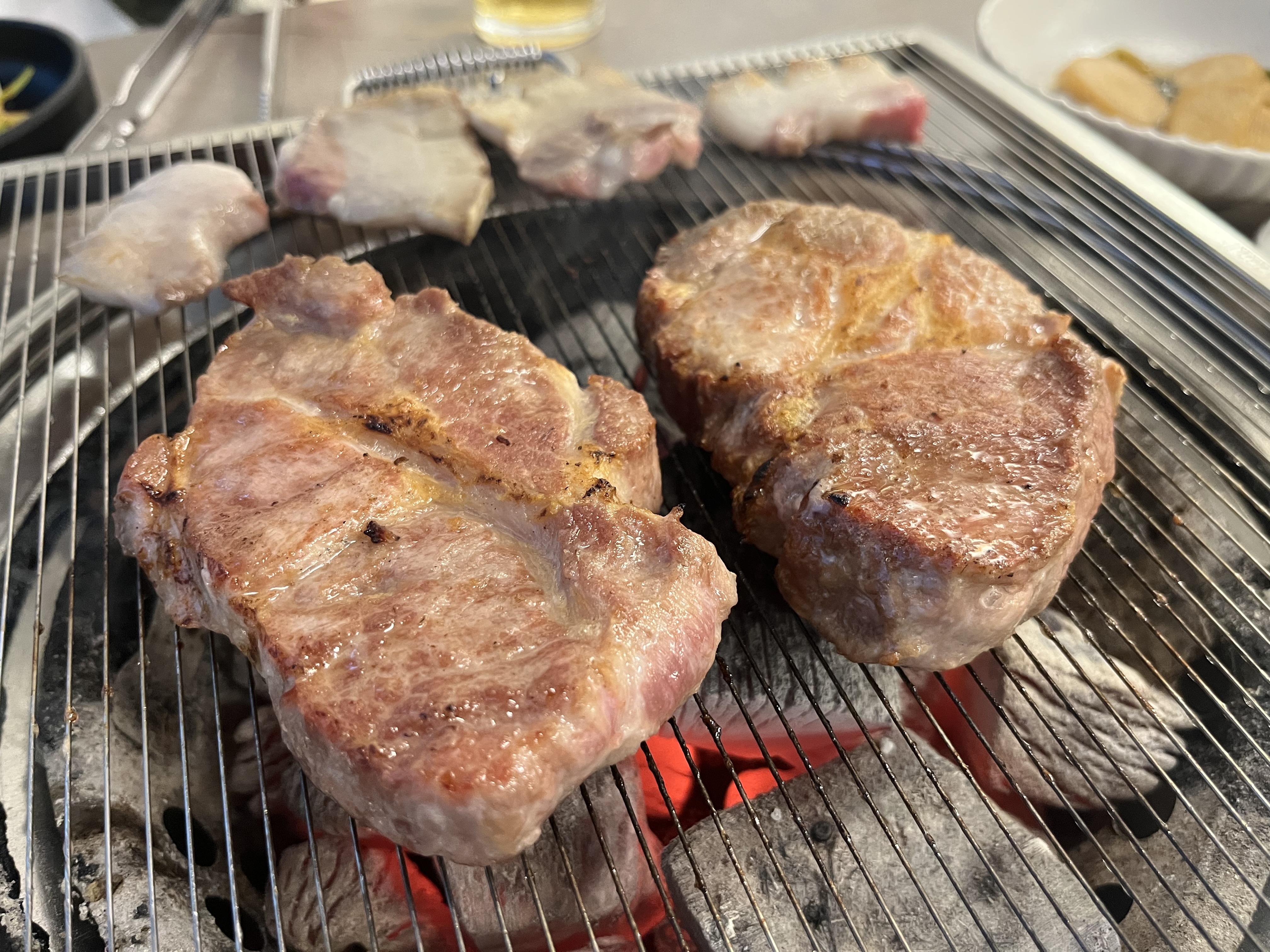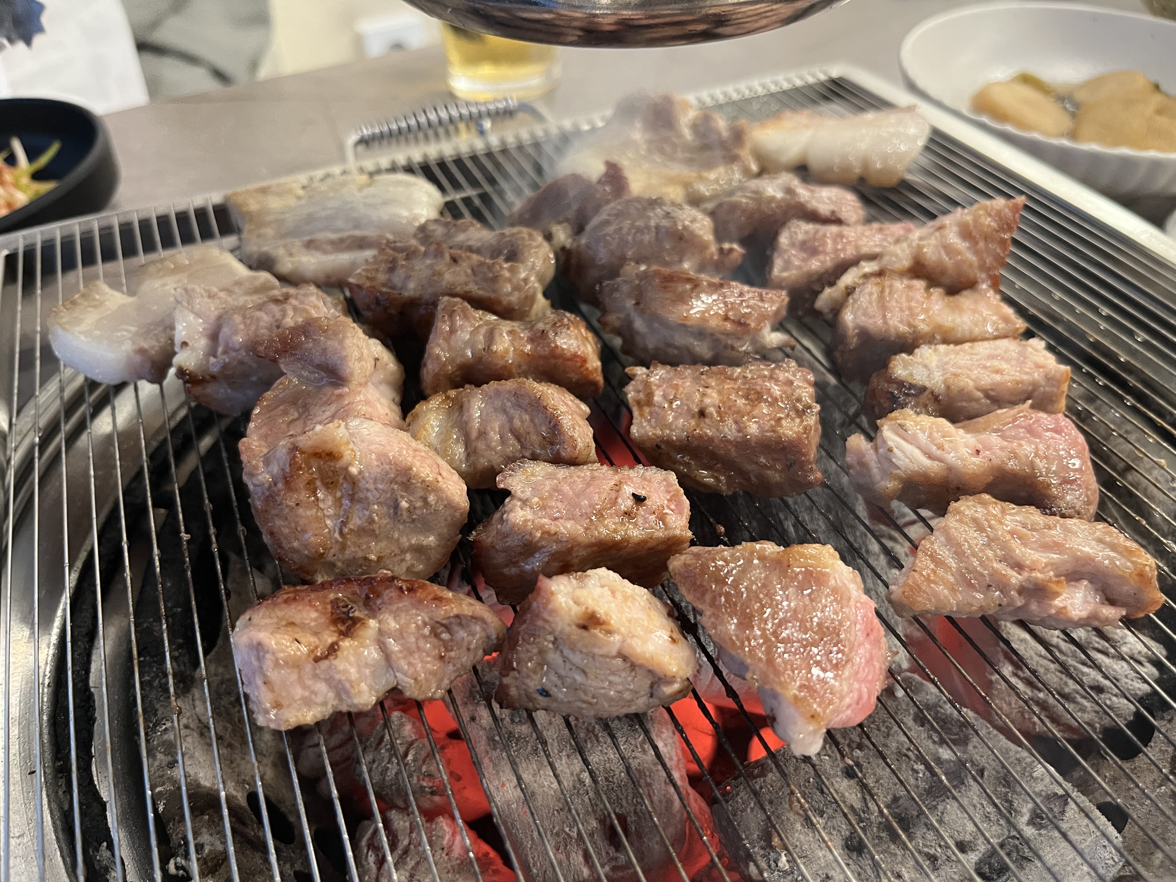 육즙 가득 맛있게 익은 고기에 숯불의 불향이 깊게 배어있다.