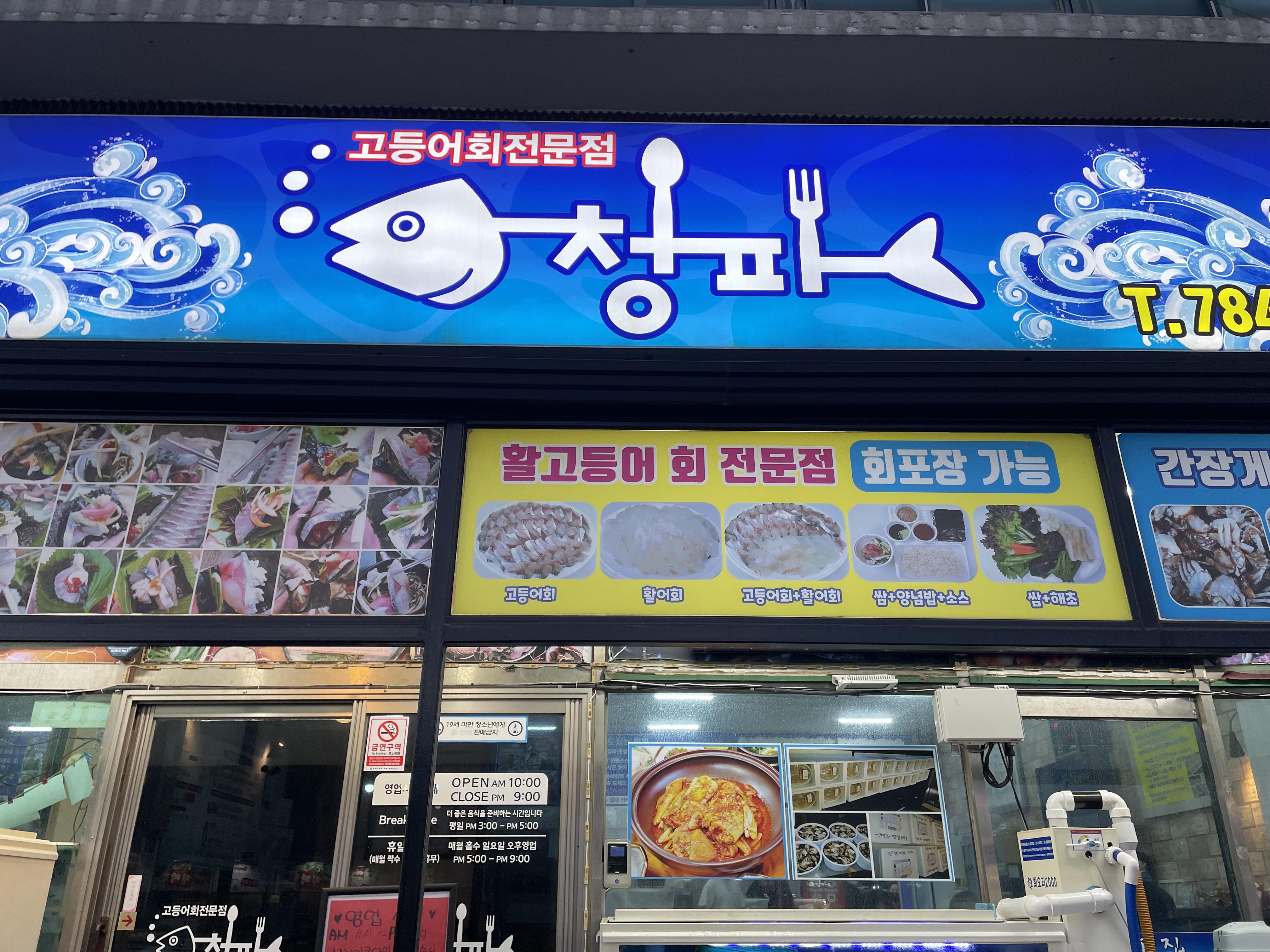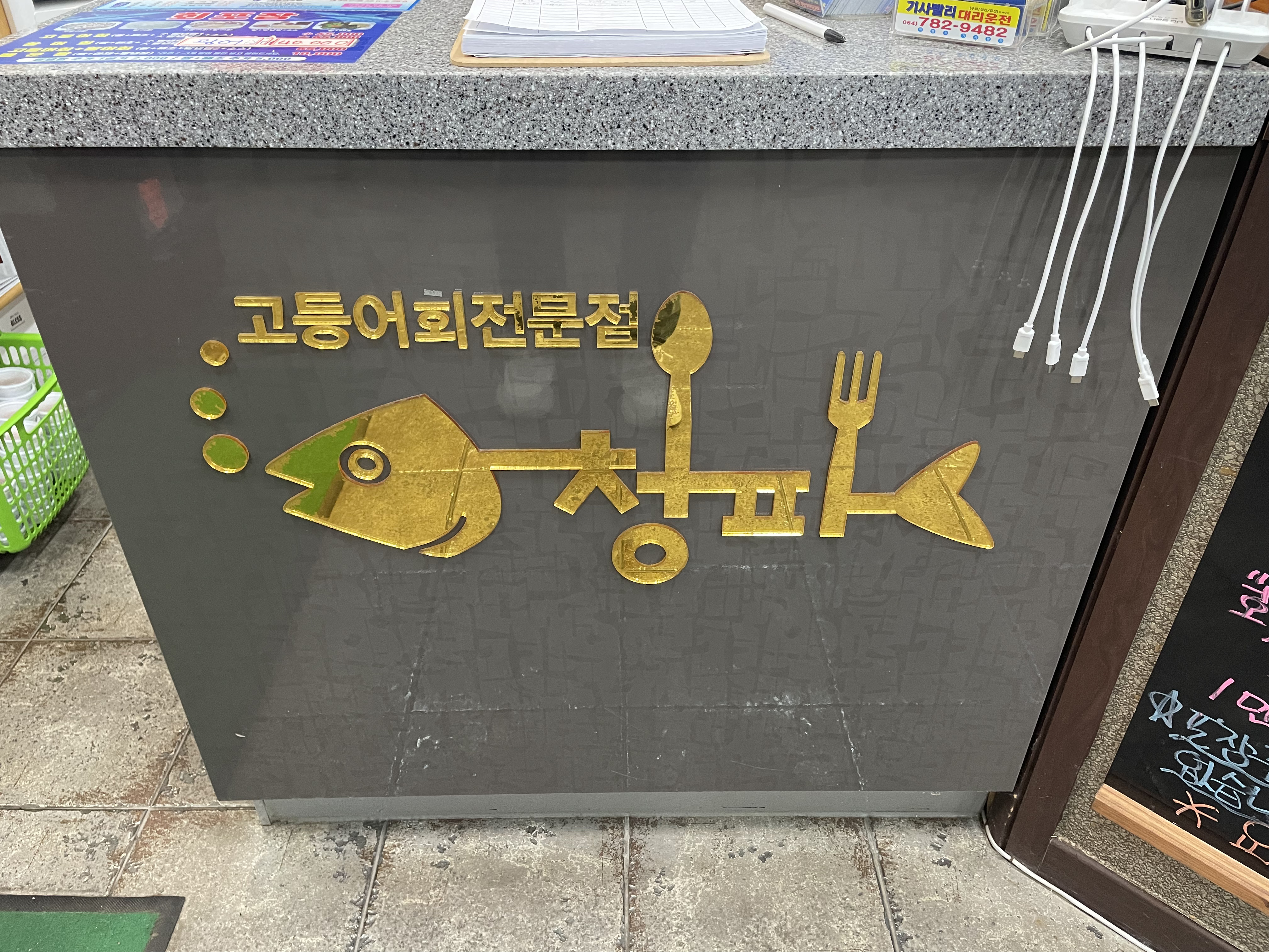 고등어회를 예약하고 앞에서 잠깐 기다렸다.