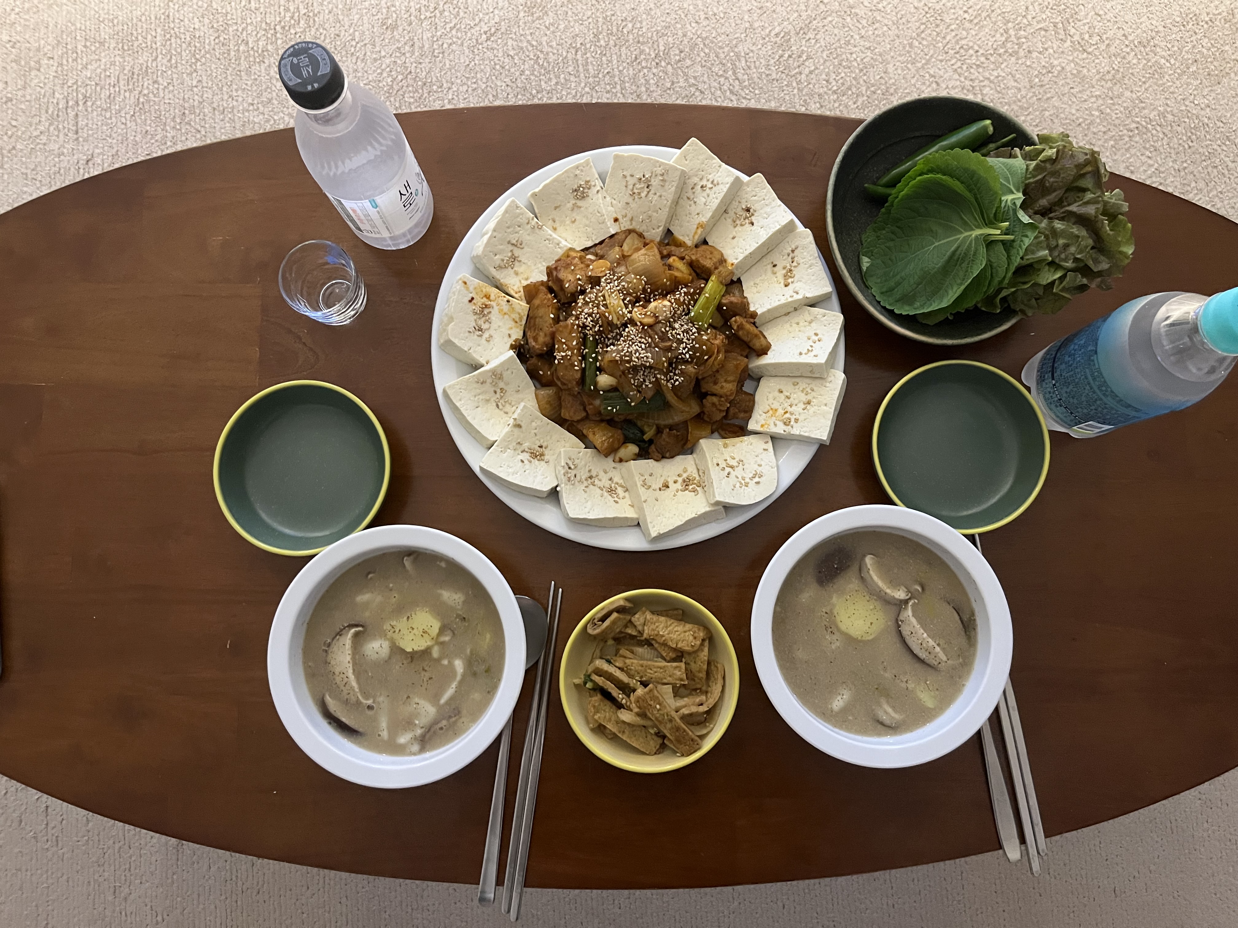 오늘의 메뉴는 제육볶음이랑 들깨수제비.