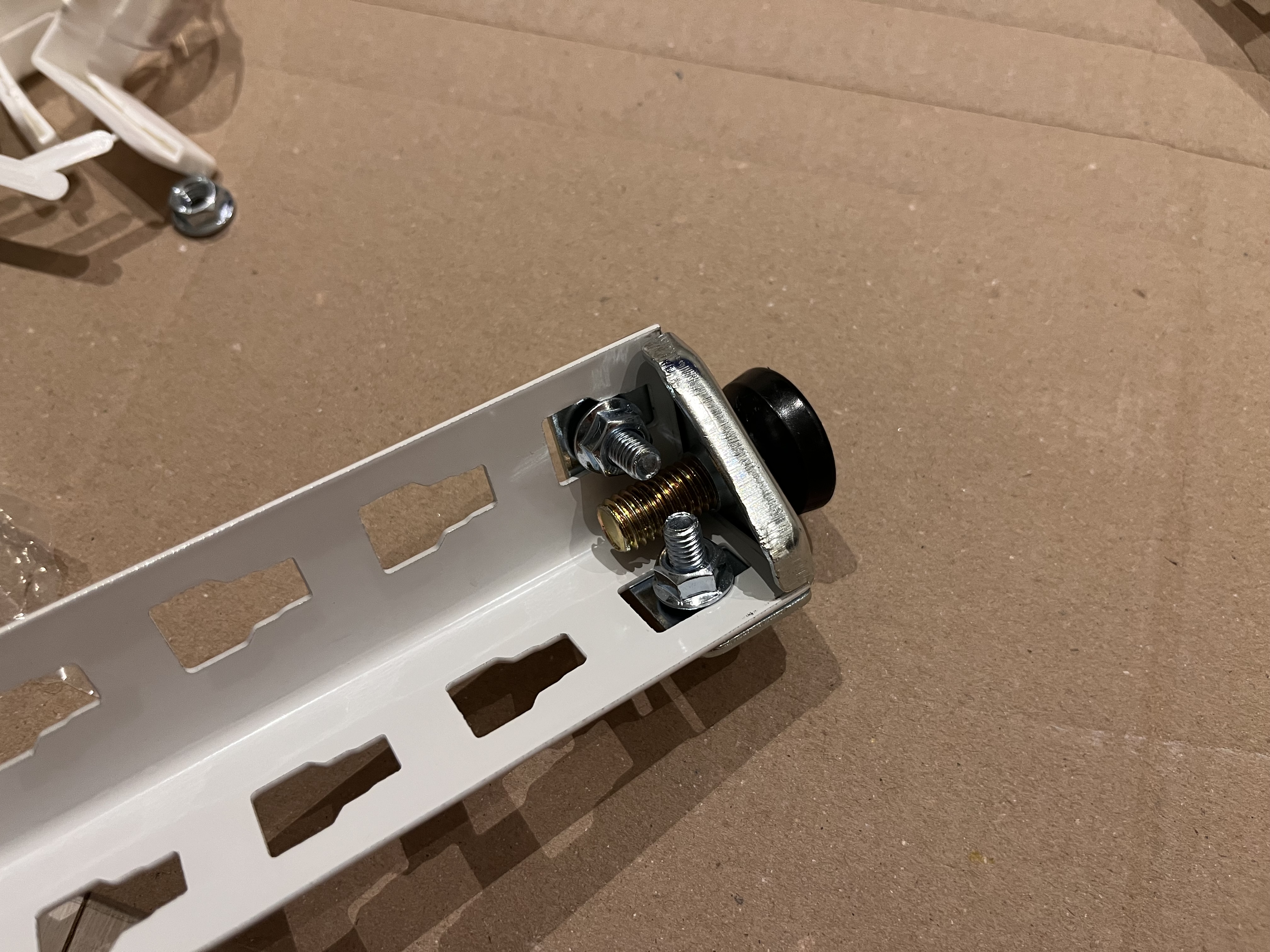 높이조절좌가 있으니 처음 의도했던 높이 1100과 거의 딱 맞는 철제선반이 완성된다.