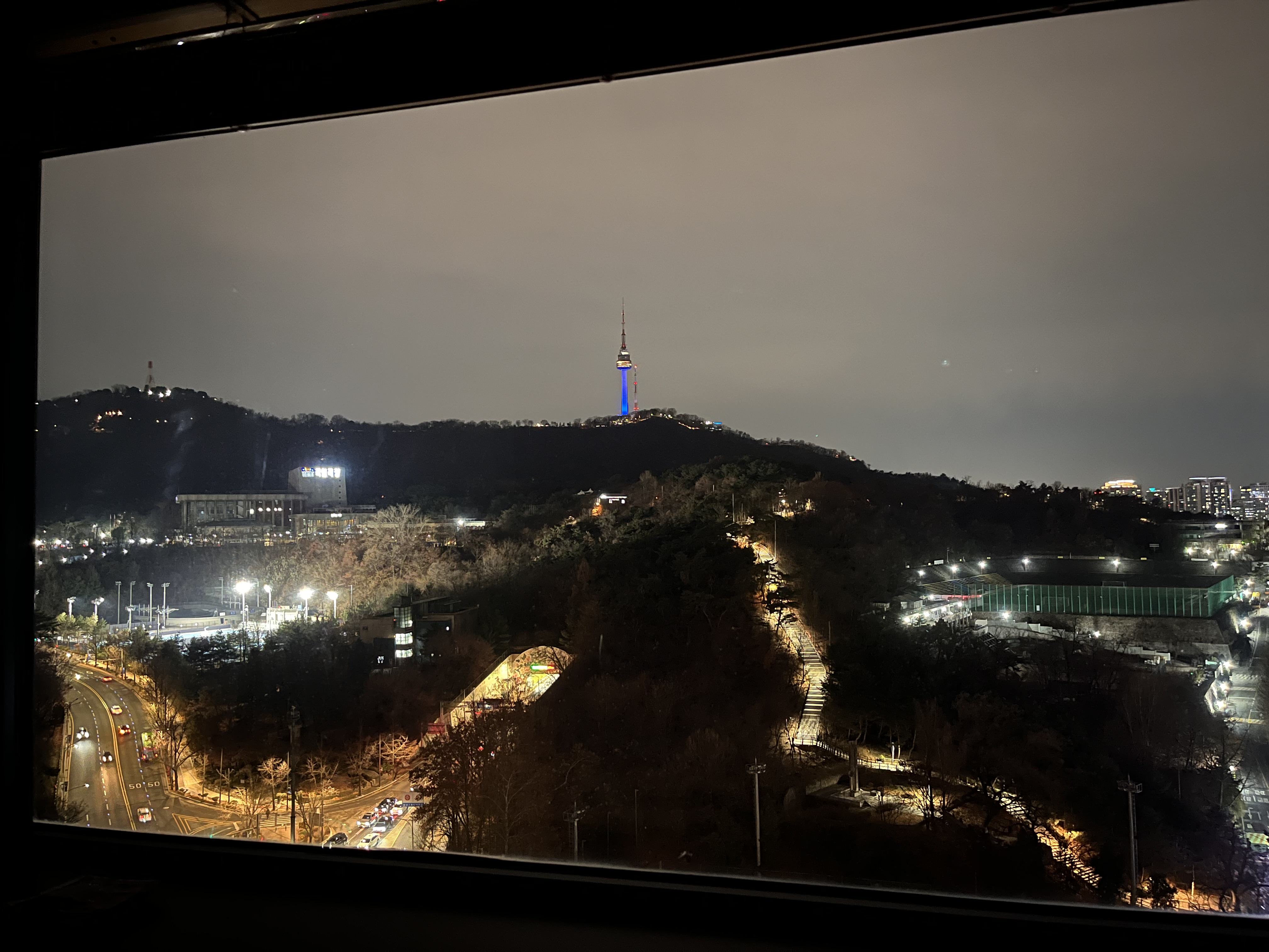 깜깜해지고 돌아오니 이런 멋진 풍경이 창밖으로 펼쳐져 있었다.