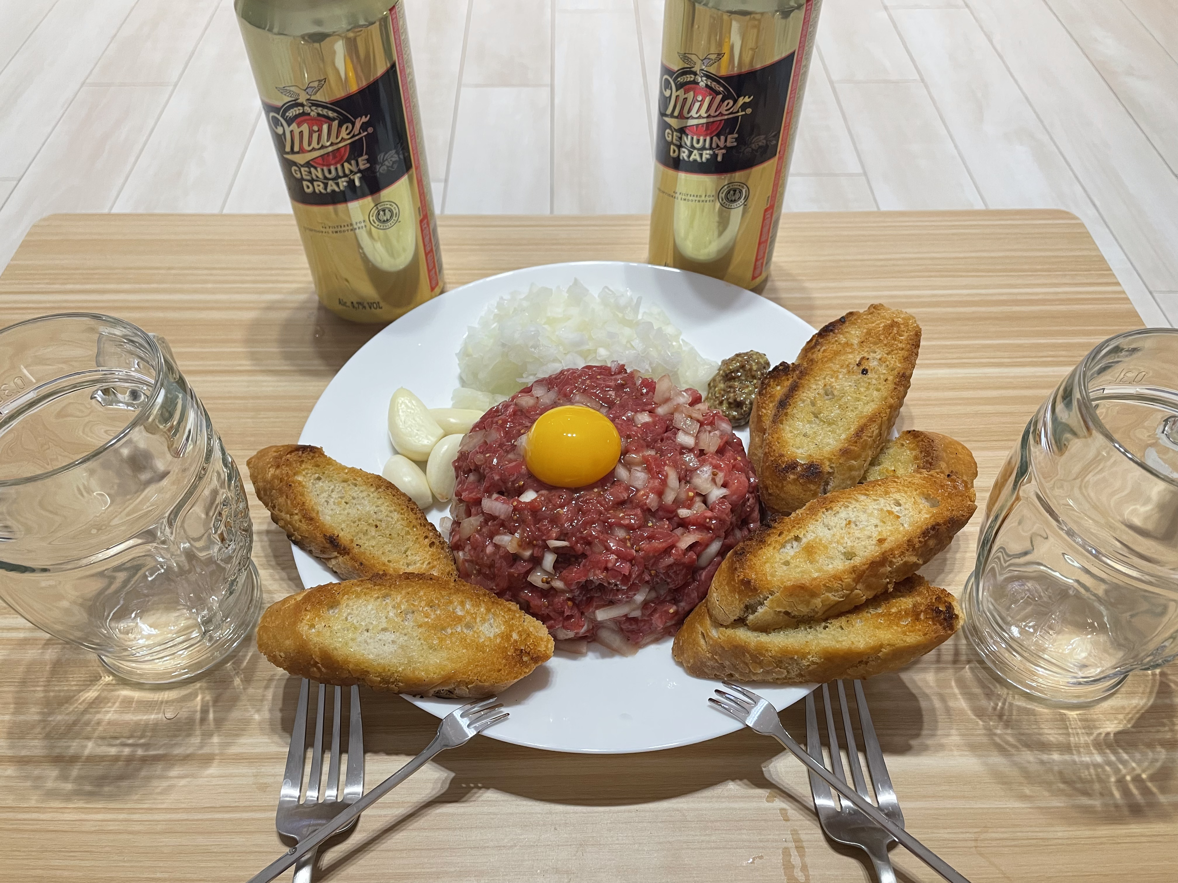 그리고 육회를 올리고 양파 소스를 곁들인다.