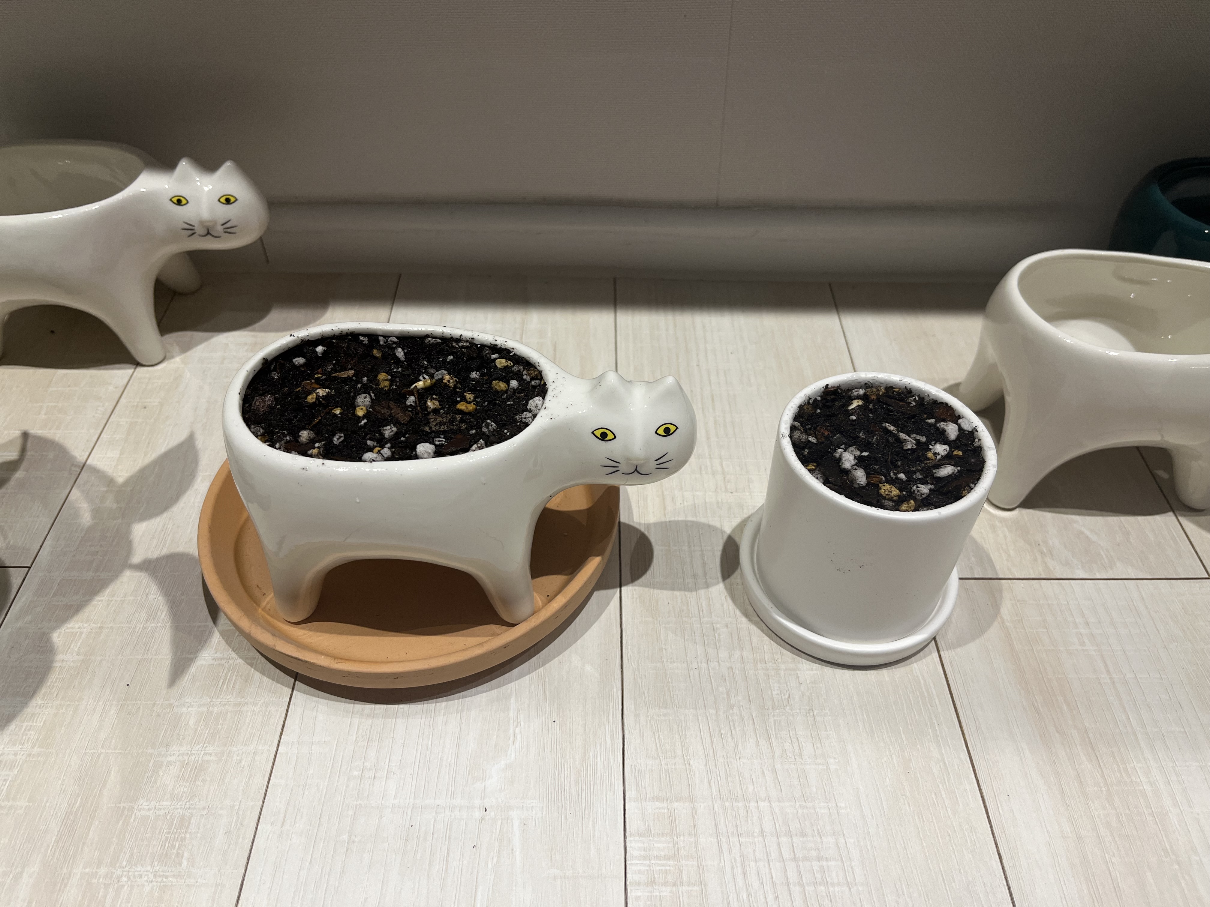 고양이 화분 하나랑 집에 있던 작은 화분 하나를 준비한다.