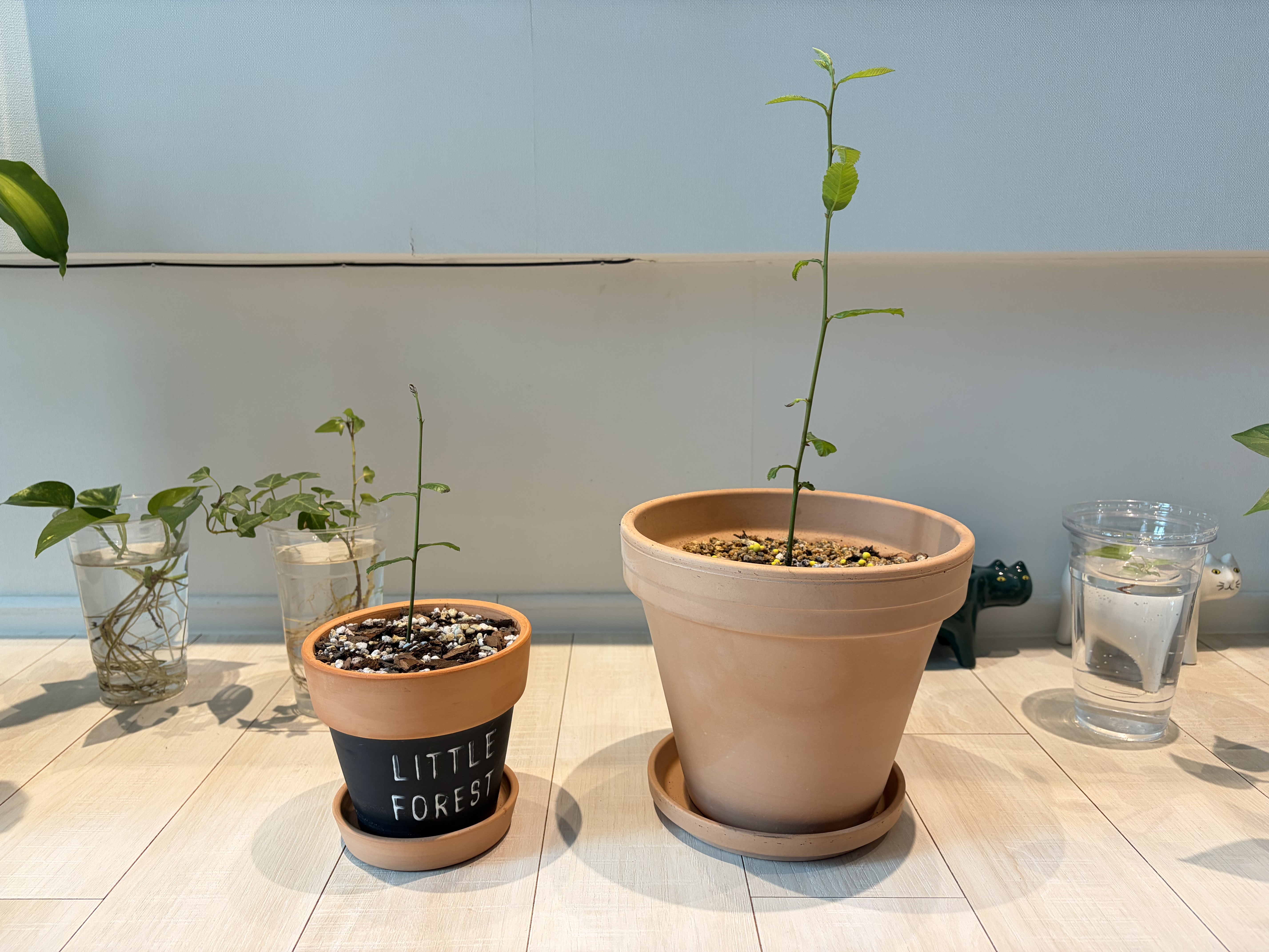 집에 있는 큰 화분으로 밤나무들을 이사시켜 줬다.