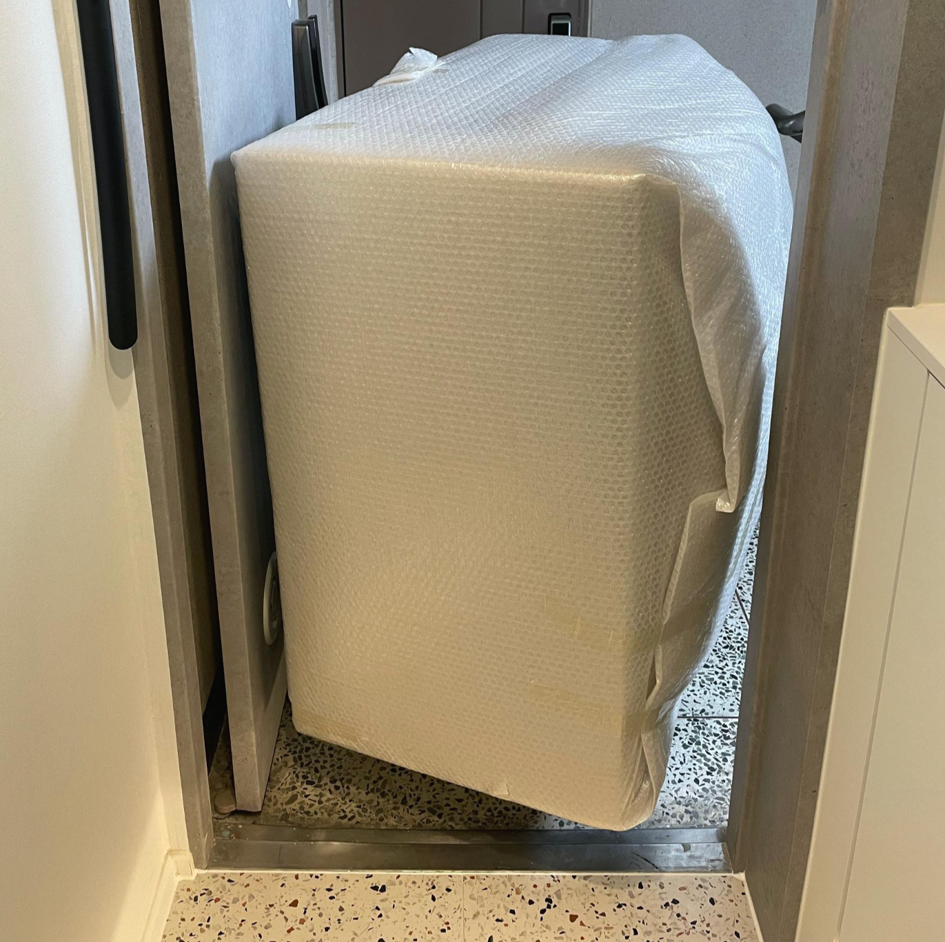 슬쩍 내다보니 밖에서 겉 포장박스는 제거하고 내용물만 수레에 실어 올라오더라.