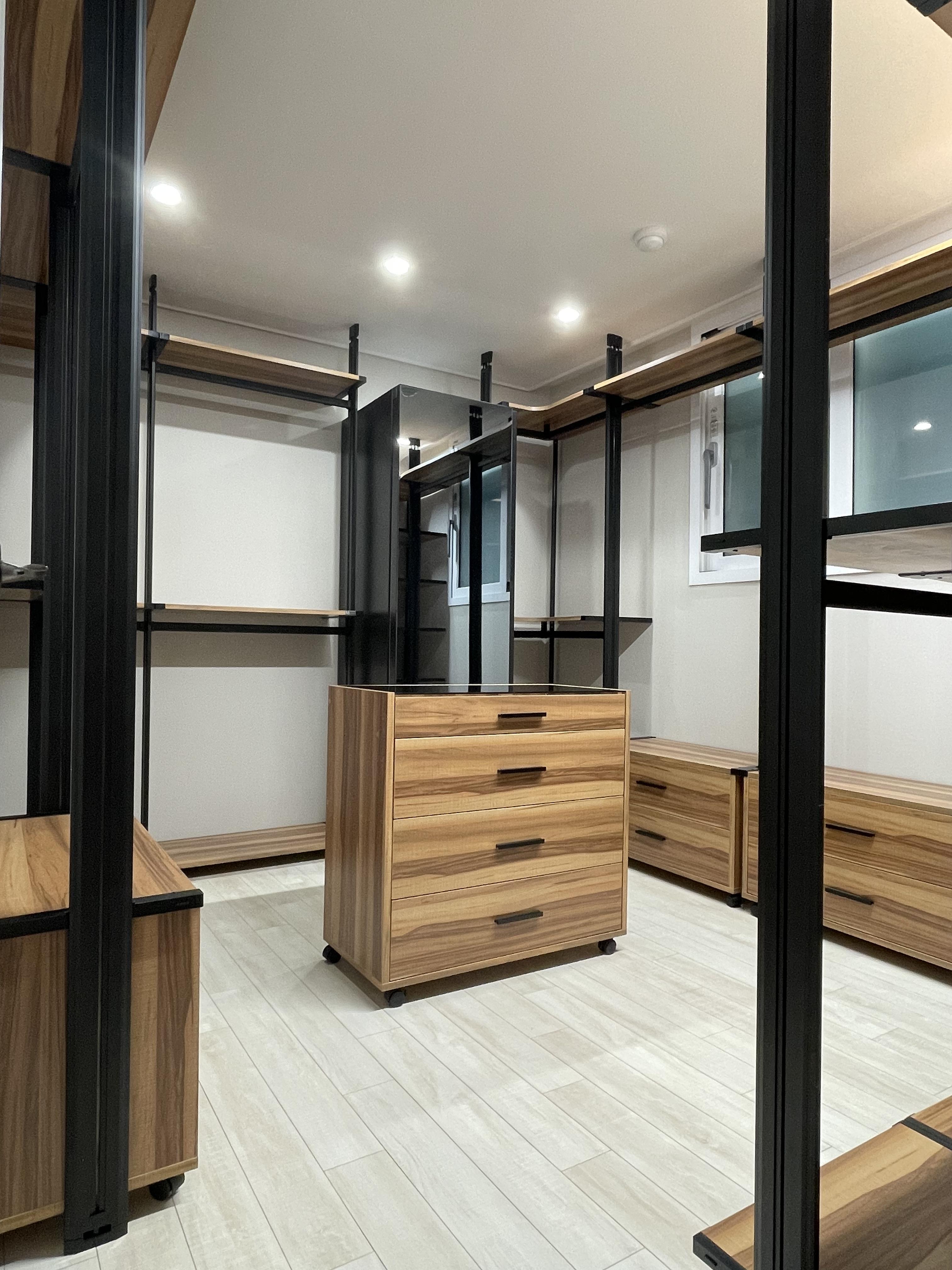 서랍장이랑 다단 선반, 옷걸이마다 구성은 상담하면서 결정한다.