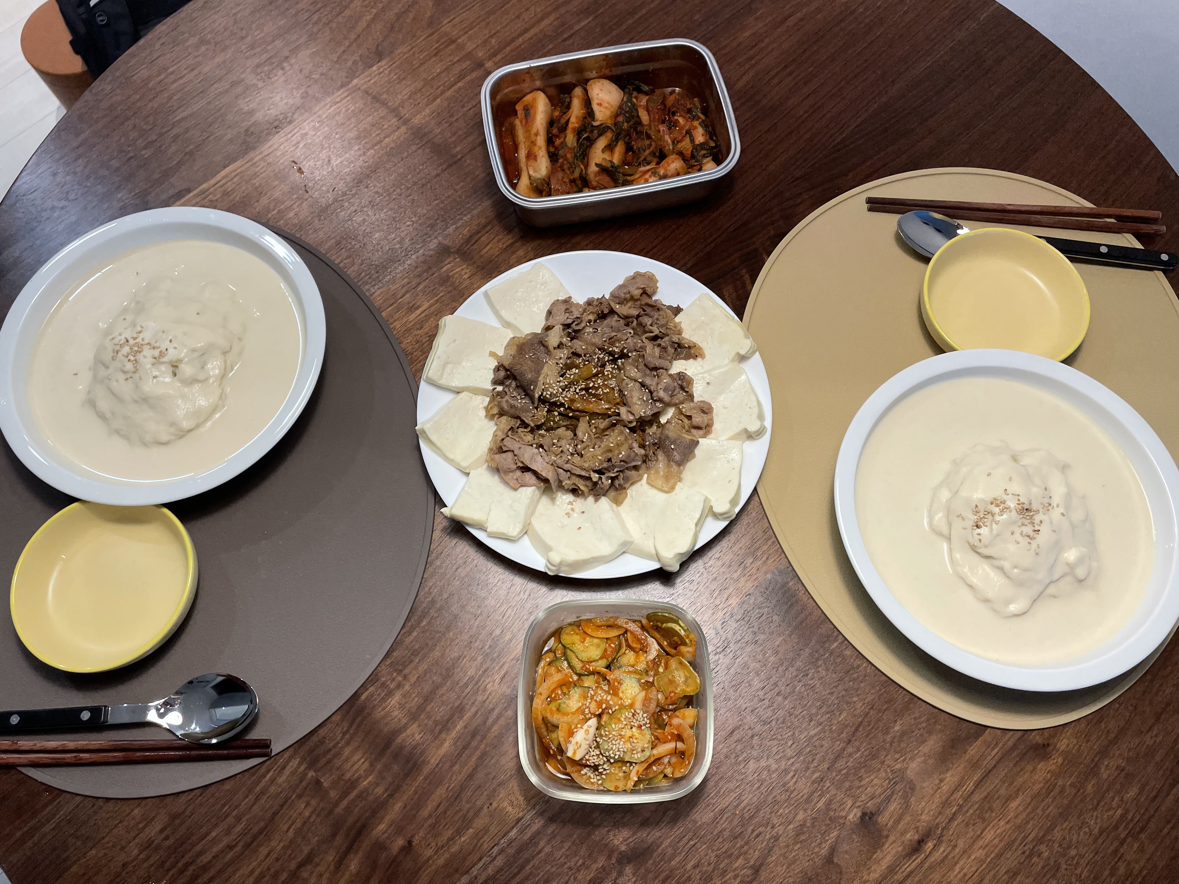 콩국수와 간장제육두부김치