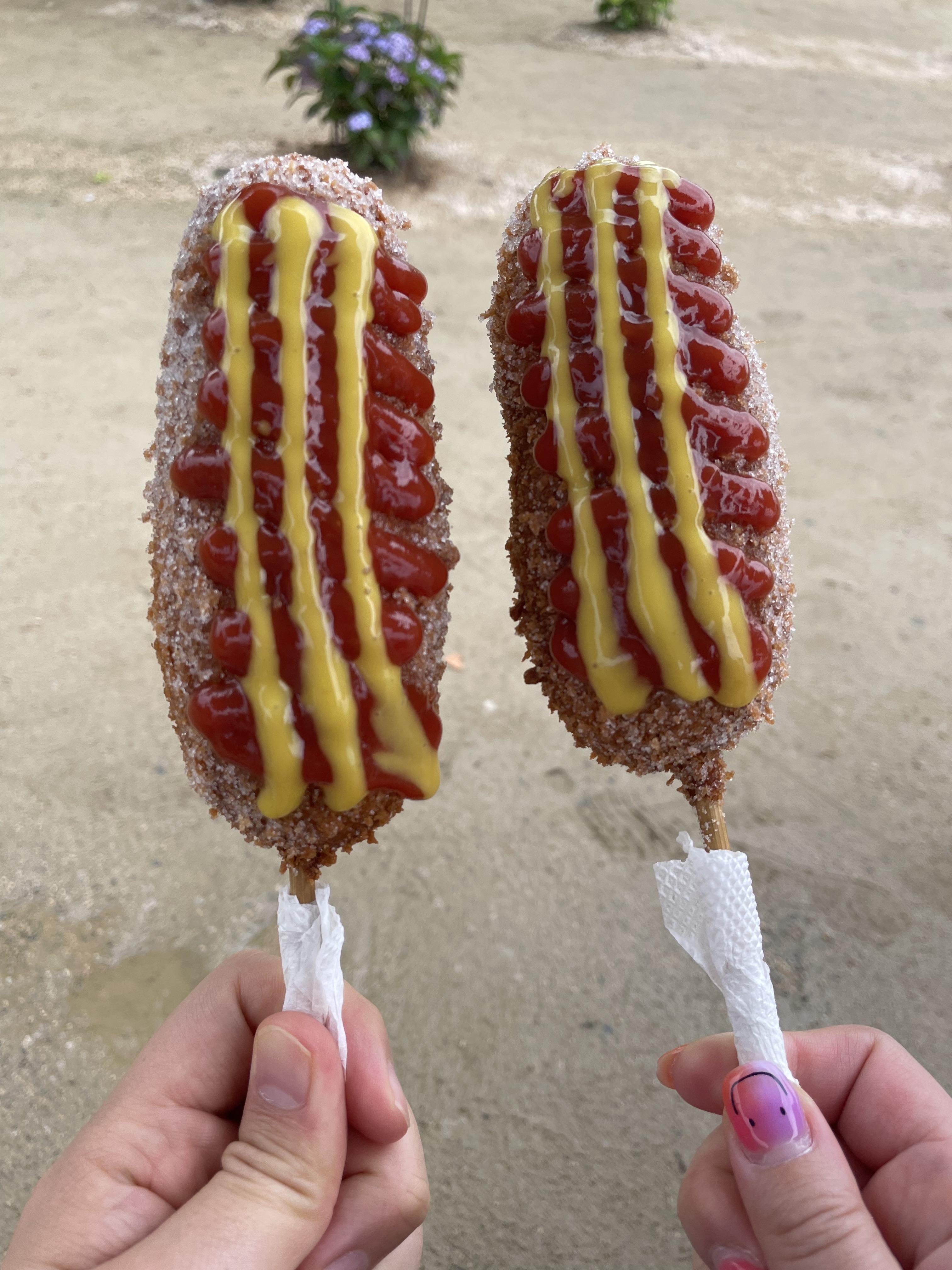 갓 튀겨져 나온 핫도그는 겉바속촉 엄청 맛있었다.