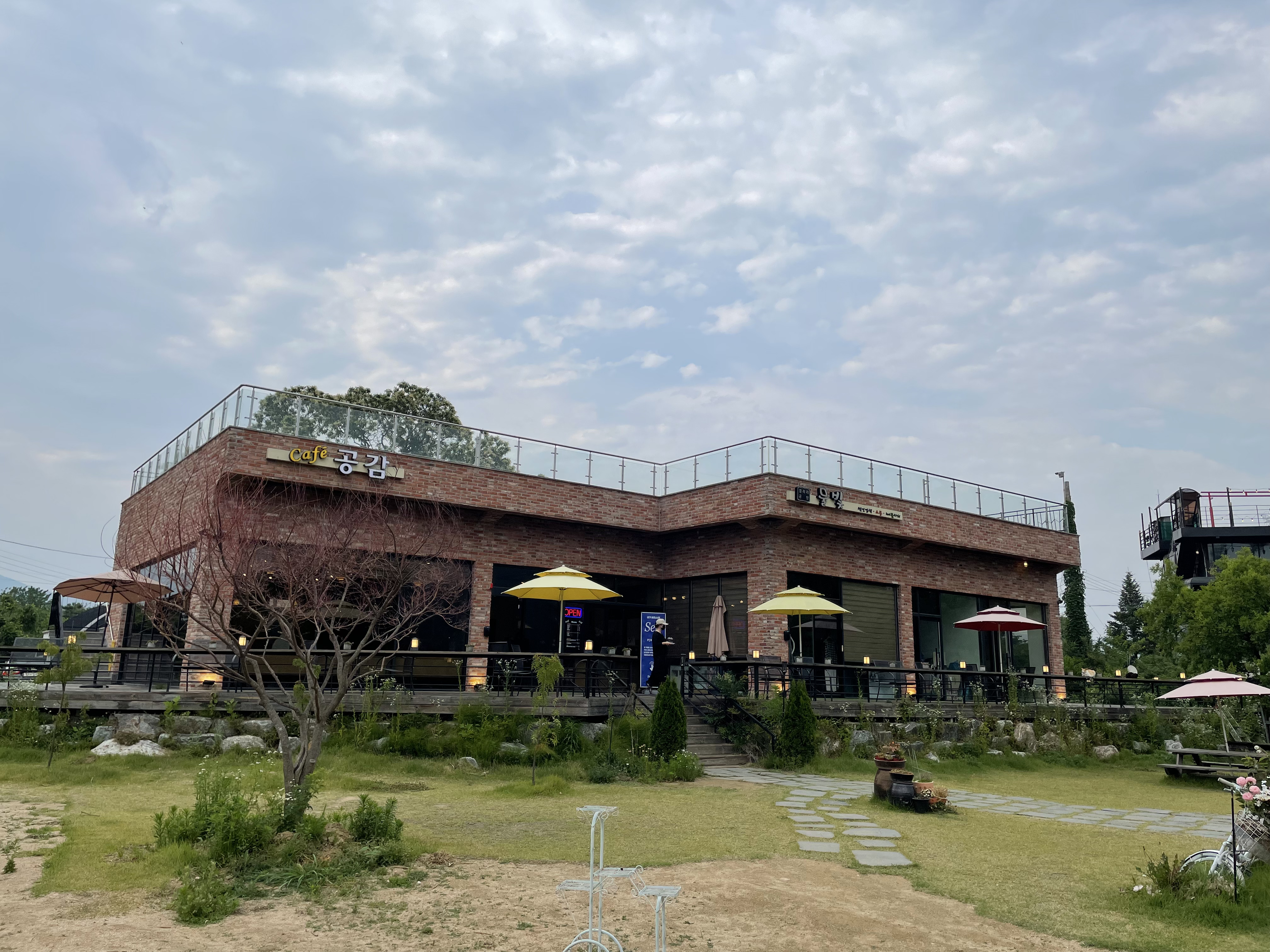 카페 앞에는 커다란 정원이 있었고, 테라스와 정원 사이사이엔 테이블도 있었다.