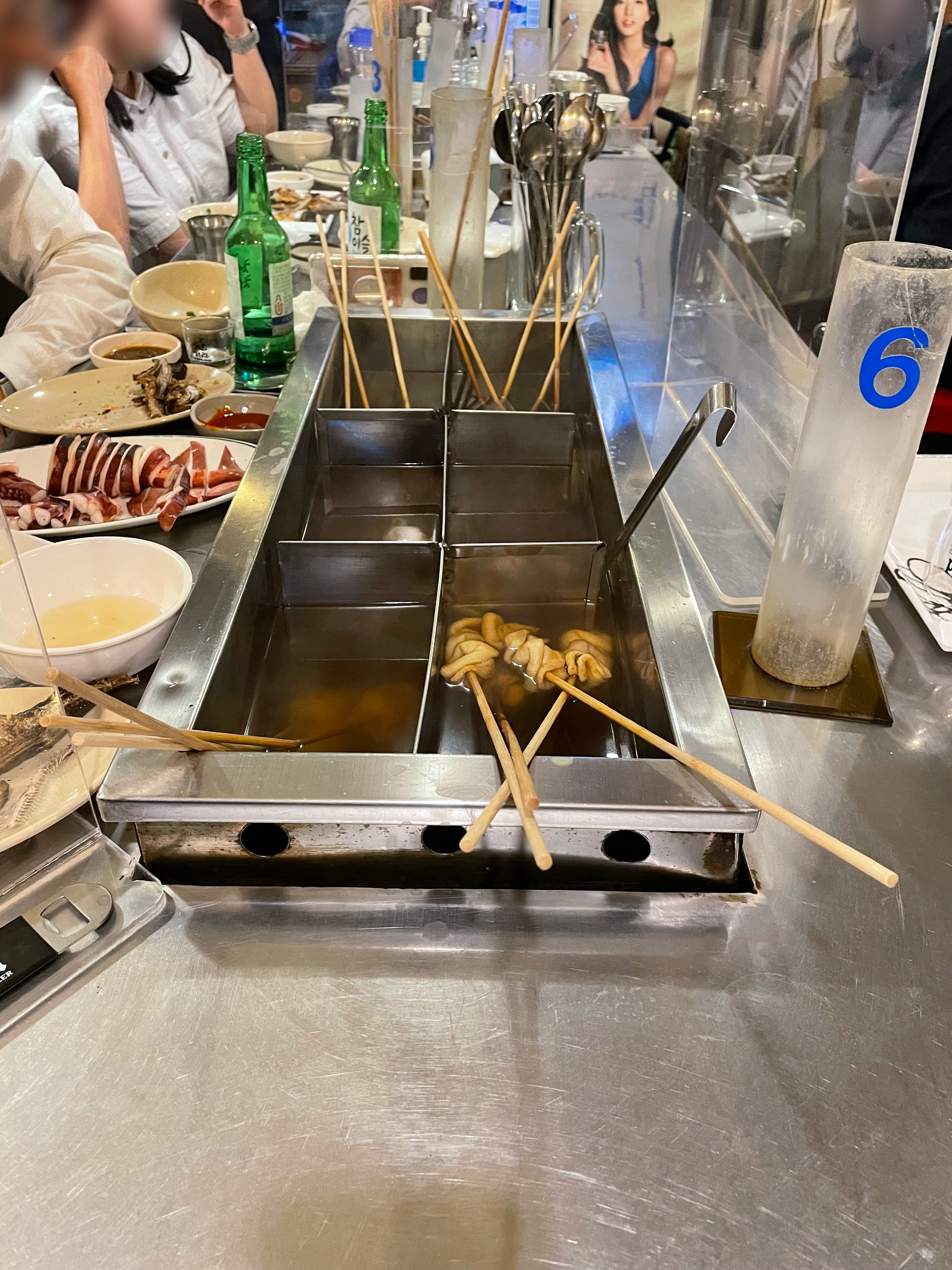 번호가 써진 통이 자리번호 겸 오뎅 먹고 꼬치 넣는 통이다.
