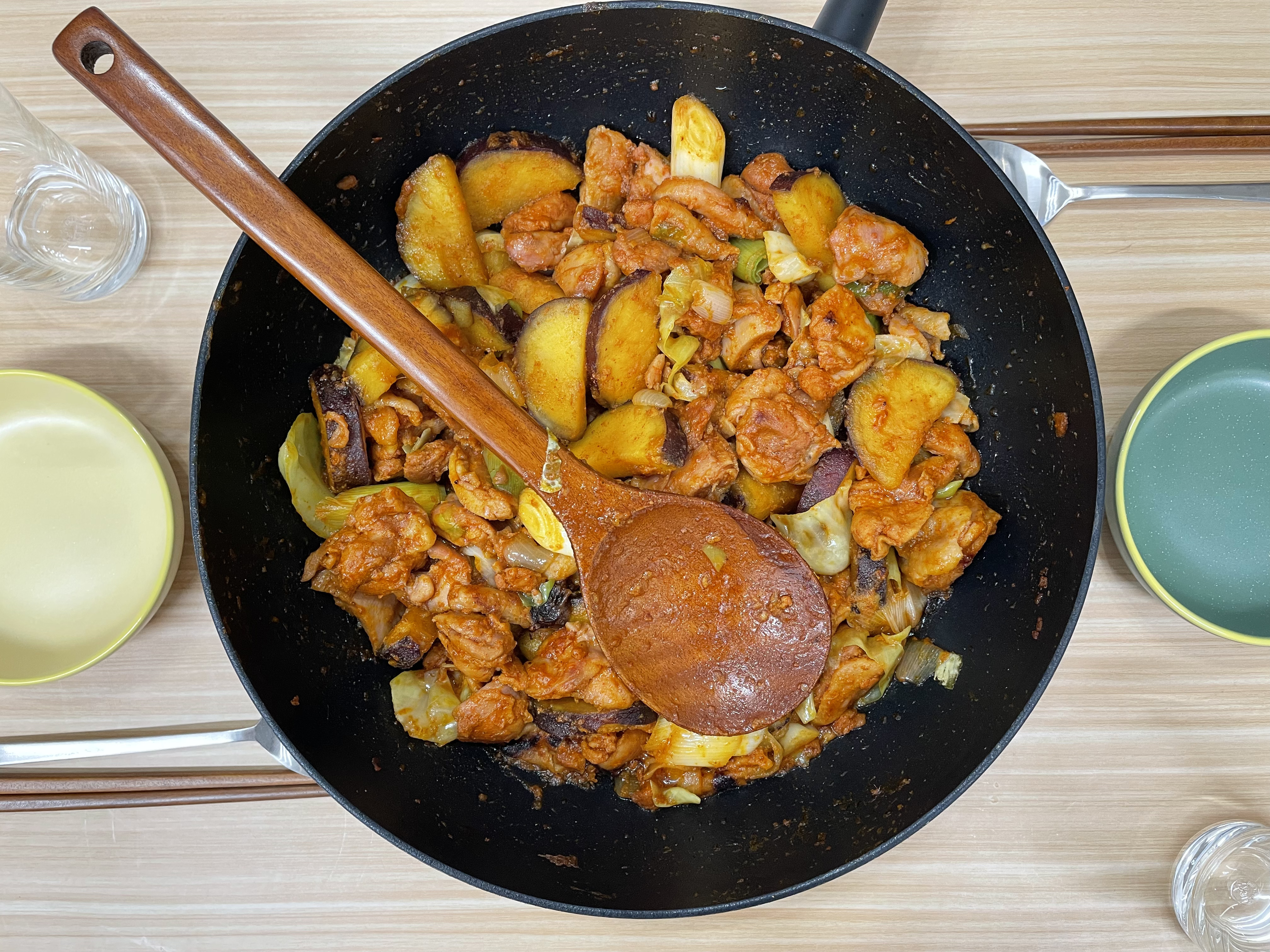 쫄깃하고 매콤한 닭갈비랑, 달달한 고구마, 식감 좋은 양배추 전부 다 맛있었다.