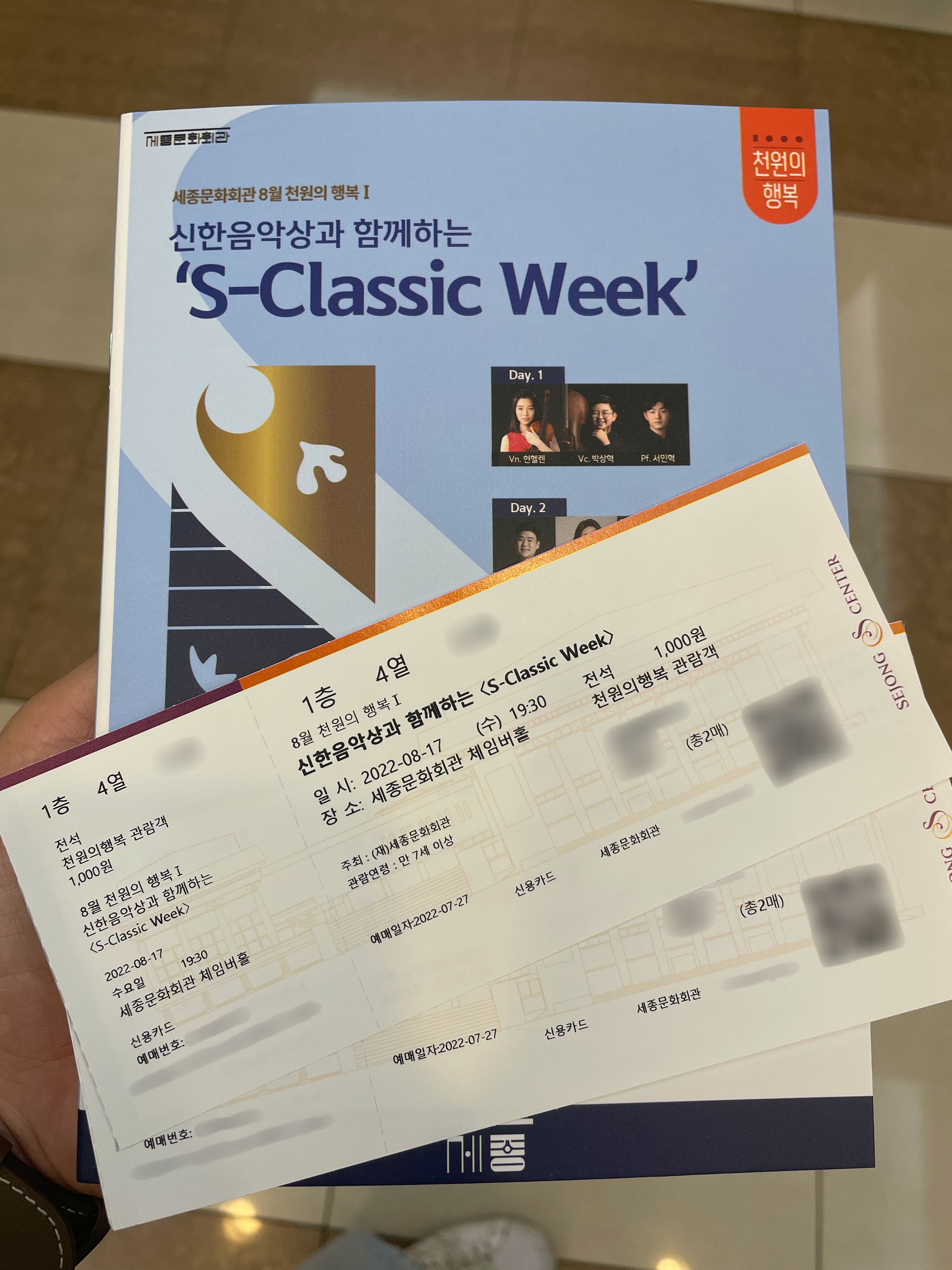 오늘 좋은 공연 보여준 세종문화회관 천원의 행복 고맙습니다.