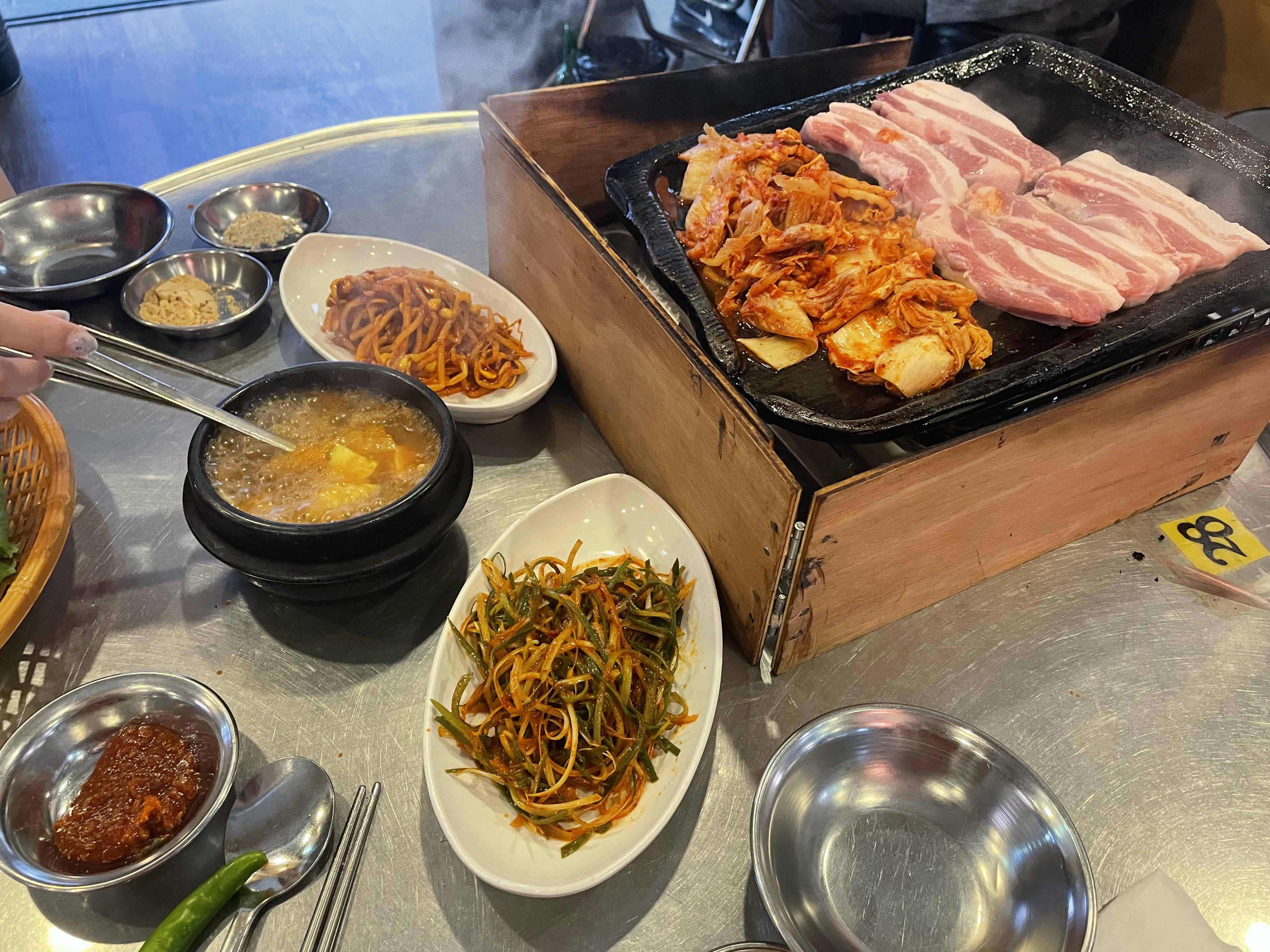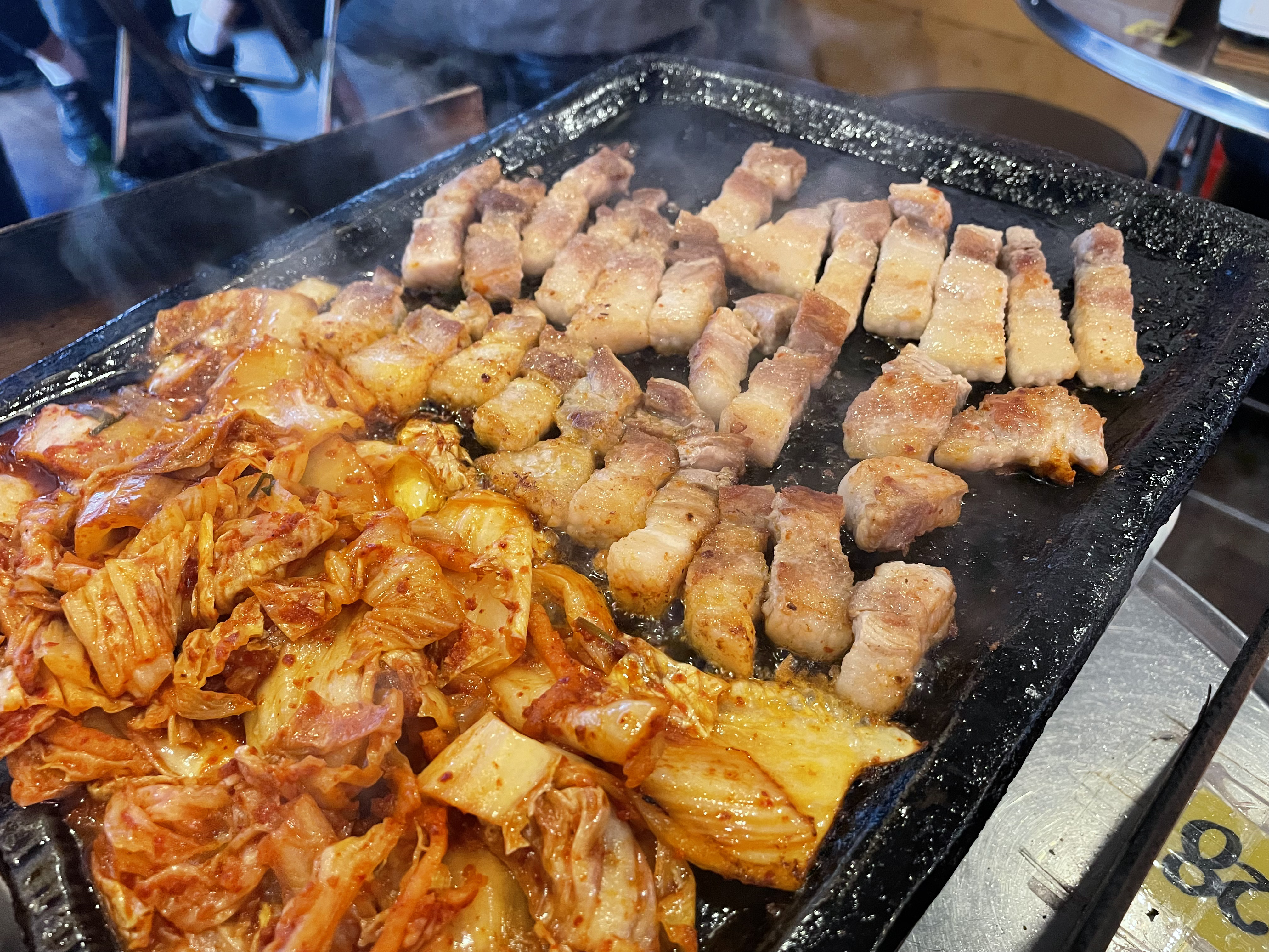 오늘은 사람이 좀 적어 직원분이 맛있게 구워주시지만, 사람이 많을 땐 셀프로 조금 뒤적뒤적 해야한다.