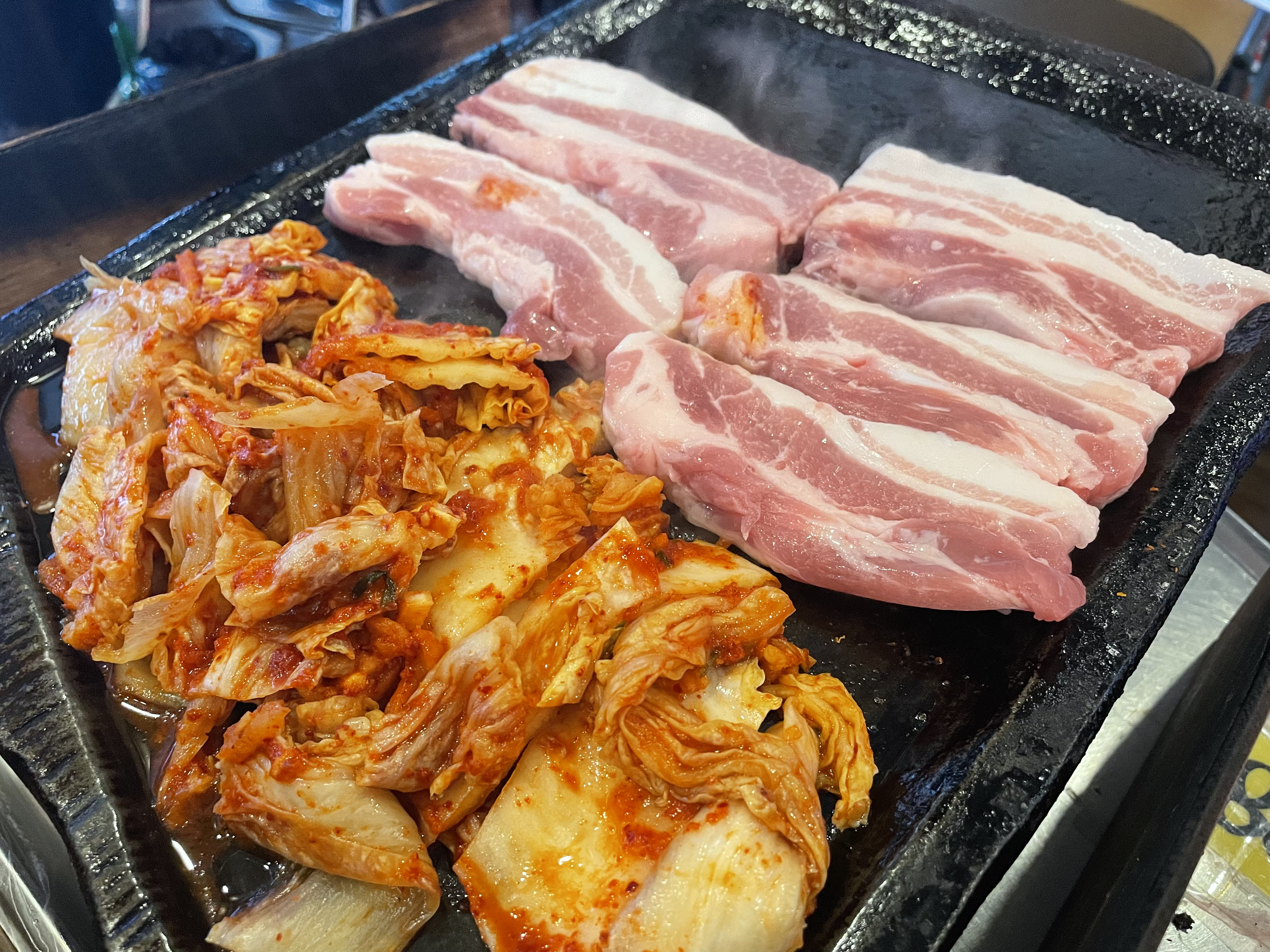 쫀득하고 도톰한 고기의 식감에 달달하게 잘 익은 김치가 그 맛을 더한다.
