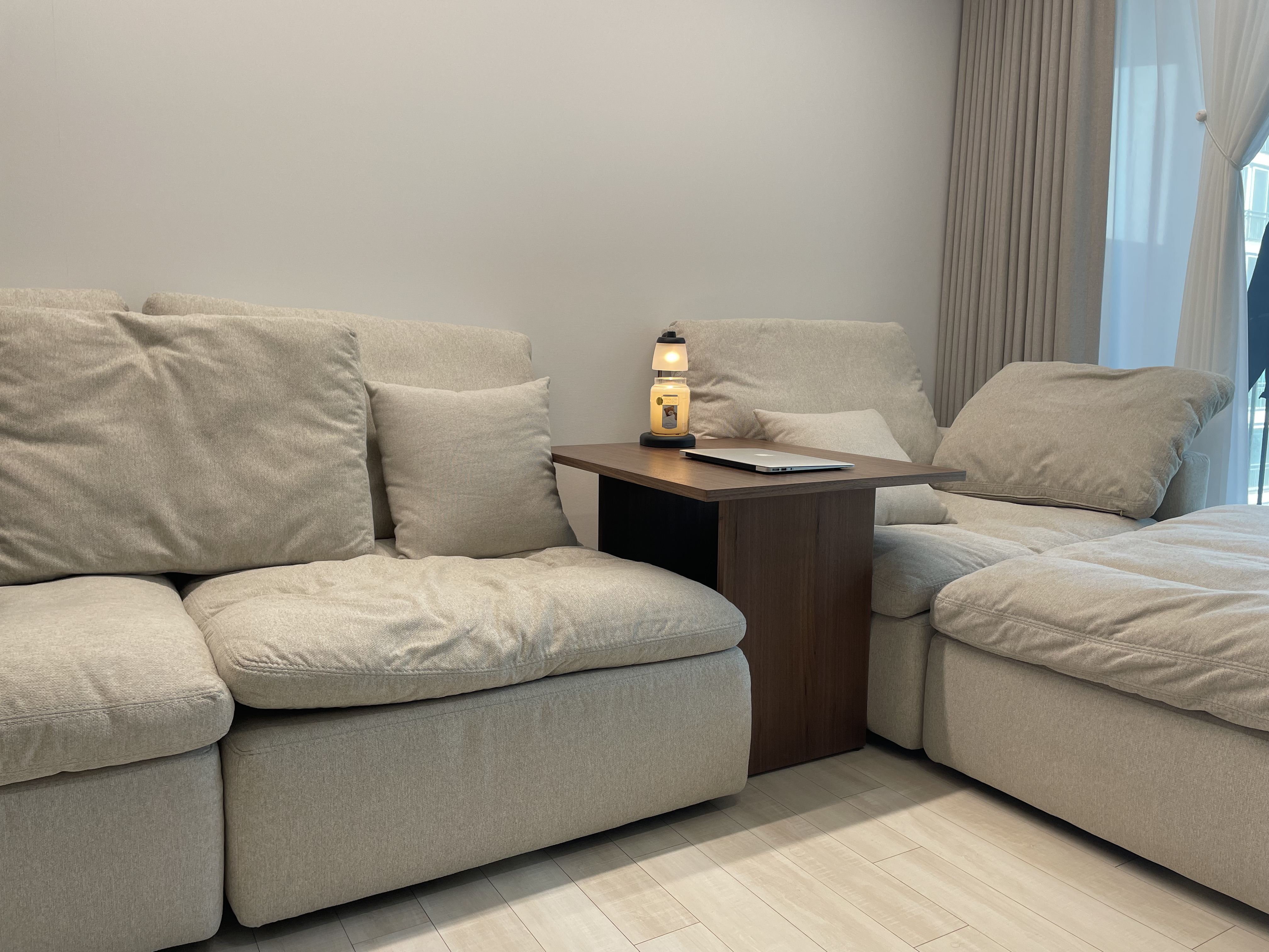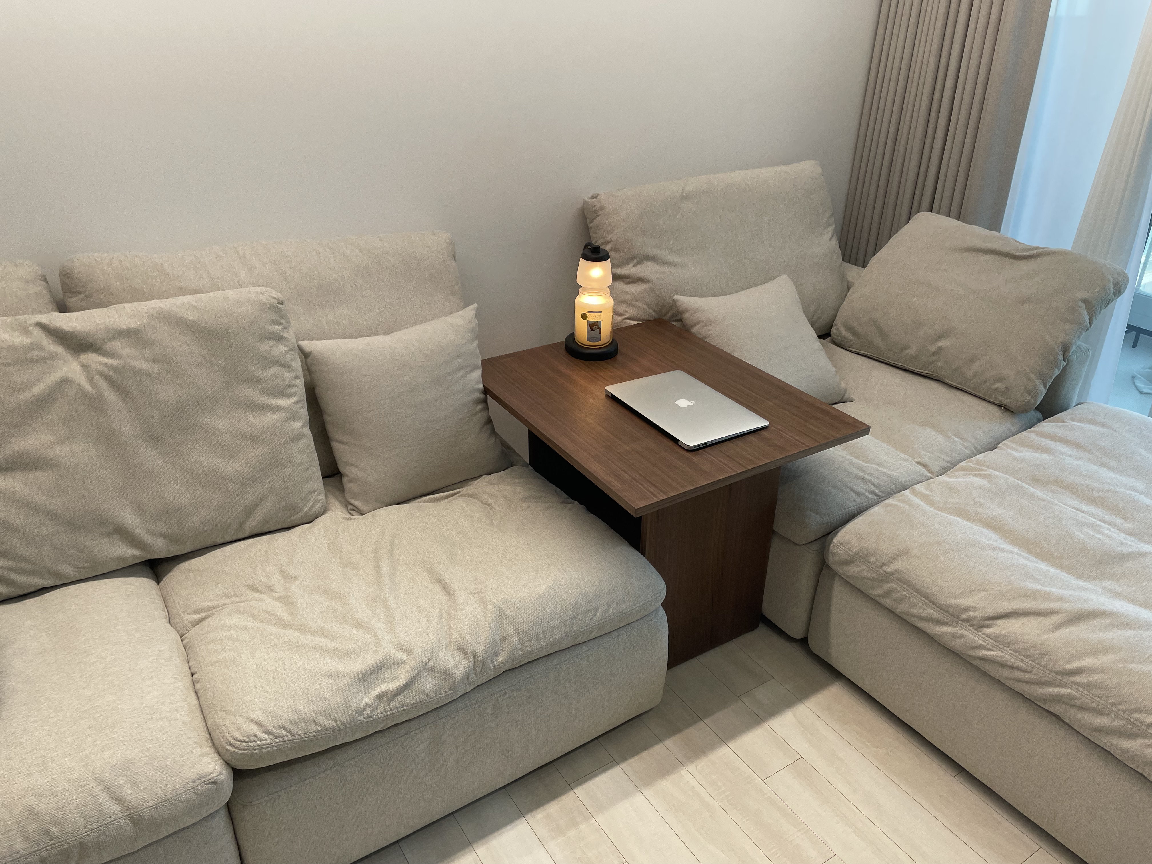 소파 사이에 놓고 책이나 랩탑 이것저것 올려놓을 곳이 있으면 좋을 것 같다.