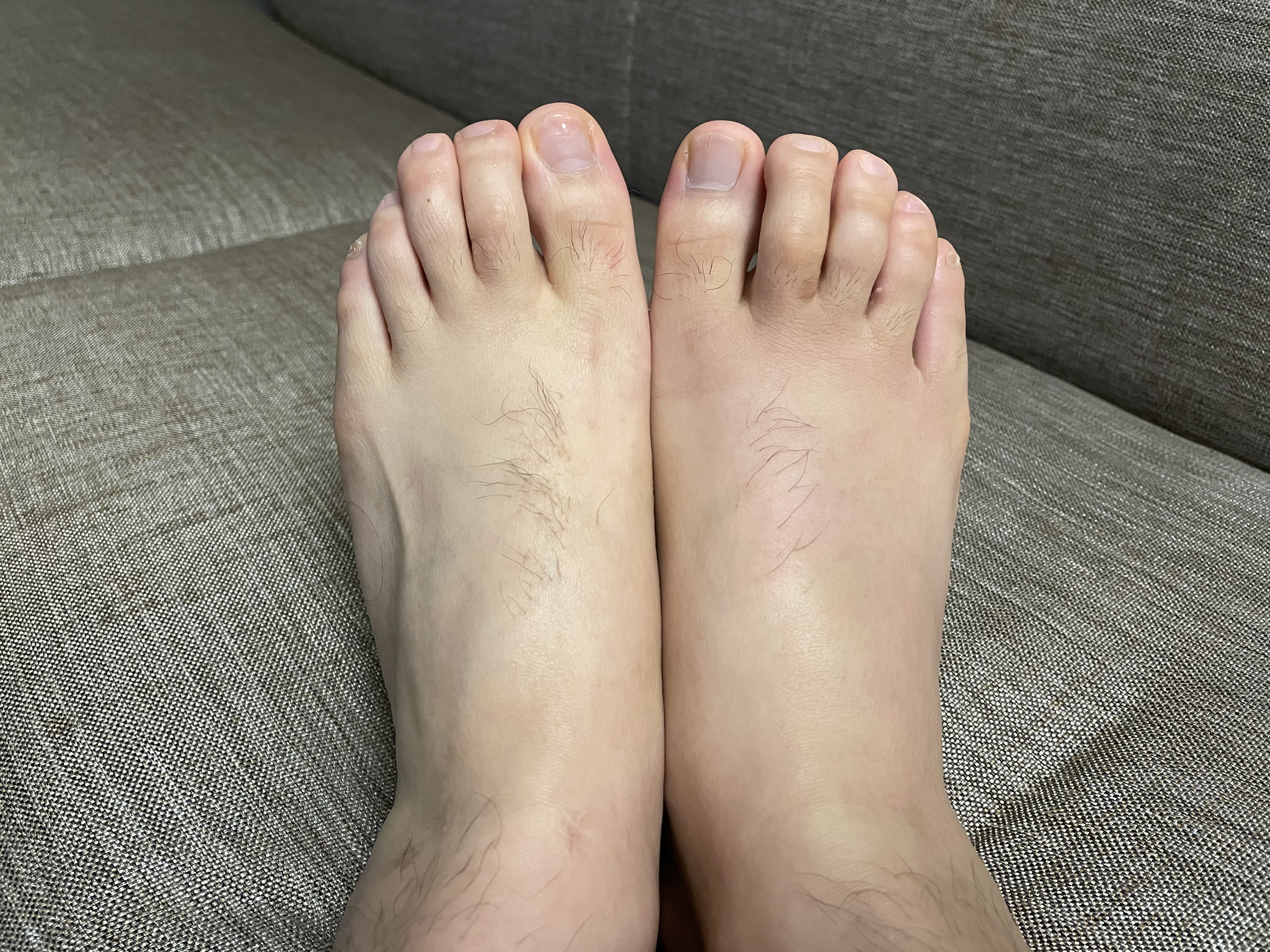 발가락 사이가 얼마나 부었는지 발가락이 벌어져서 V자를 만들고 있다.