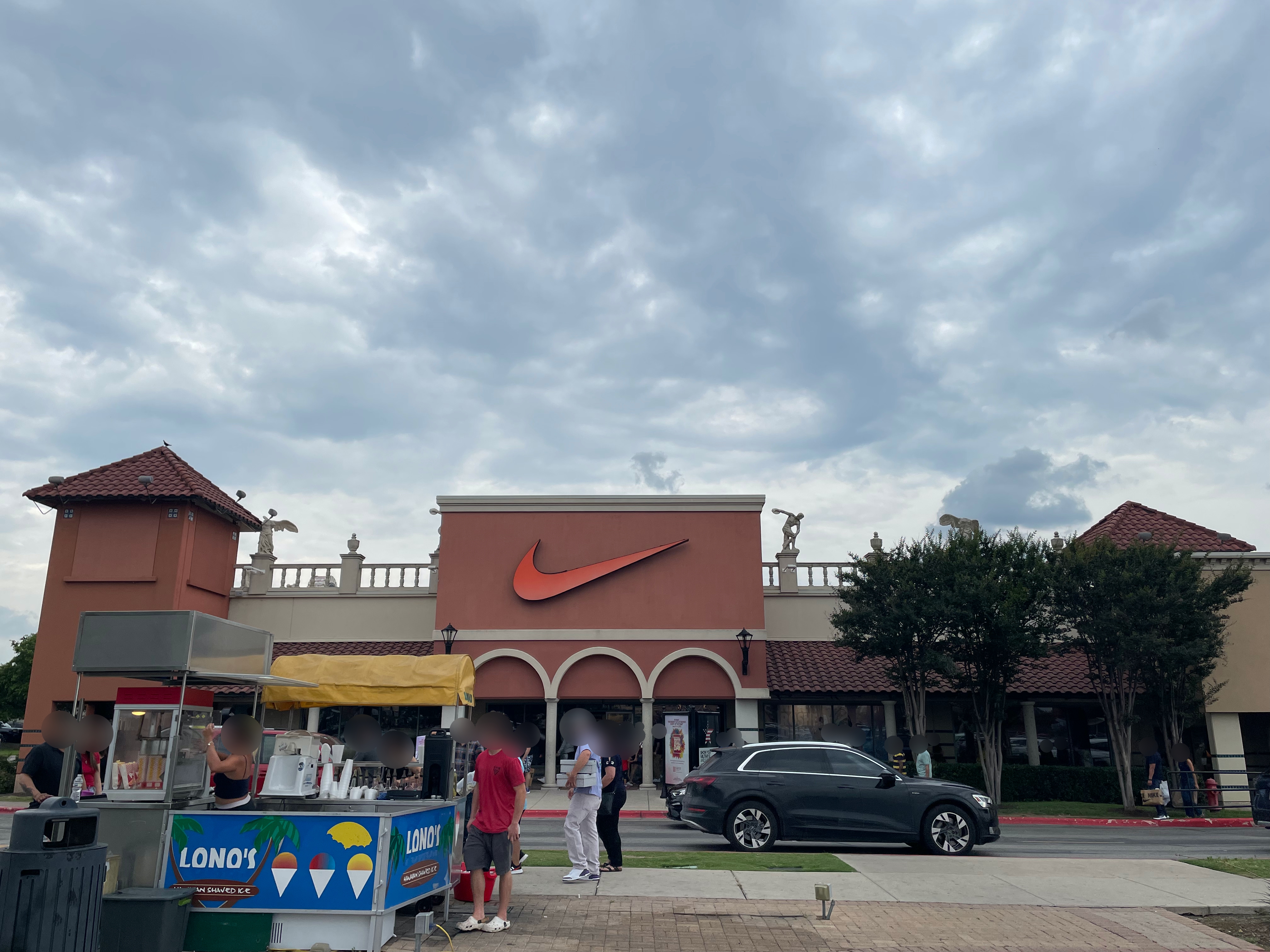 아웃렛 도착하기 한 블록 전부터 차들이 줄을 서있었다.