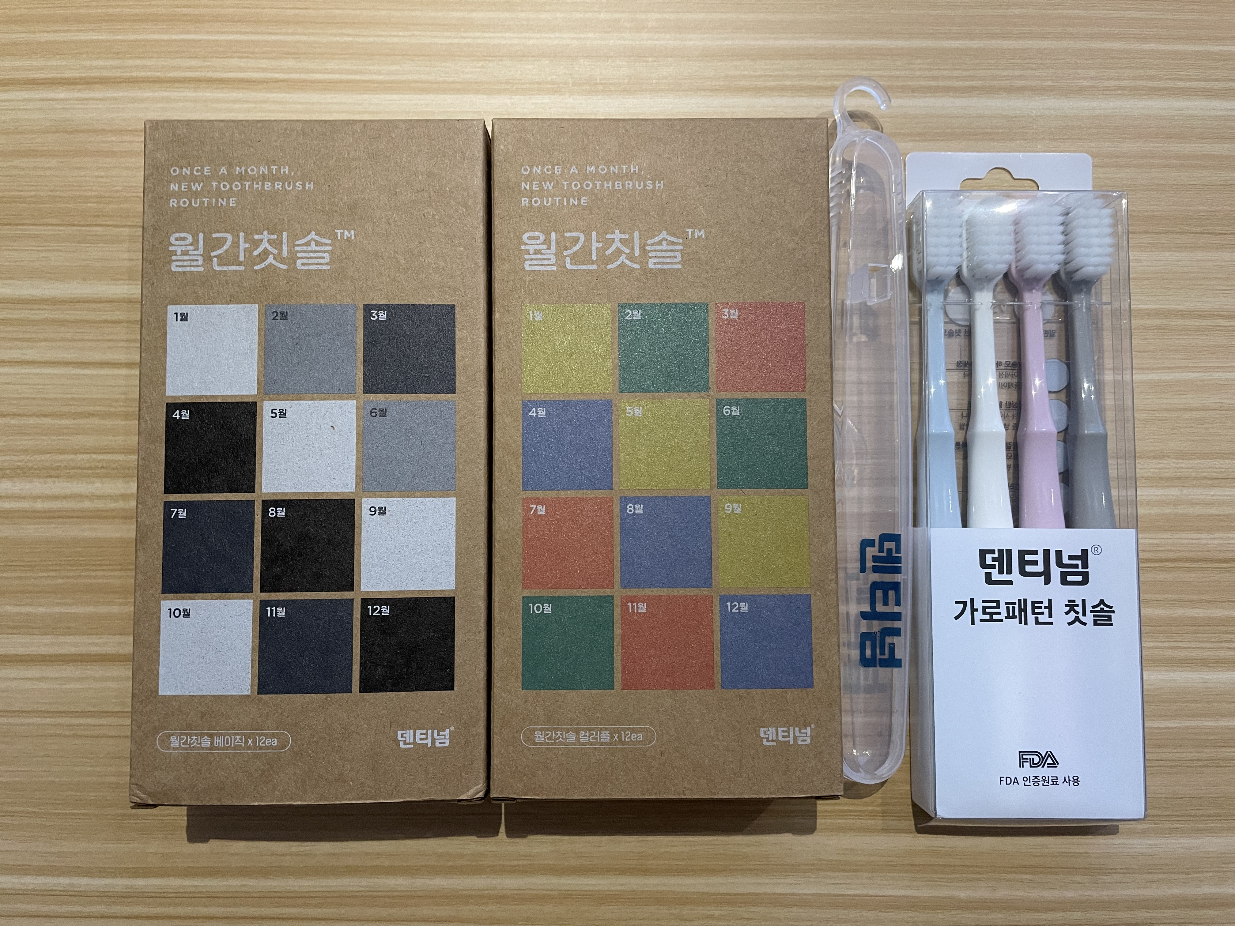 1월부터 12월까지 적힌 상자에 칫솔이 하나씩 들어있다.