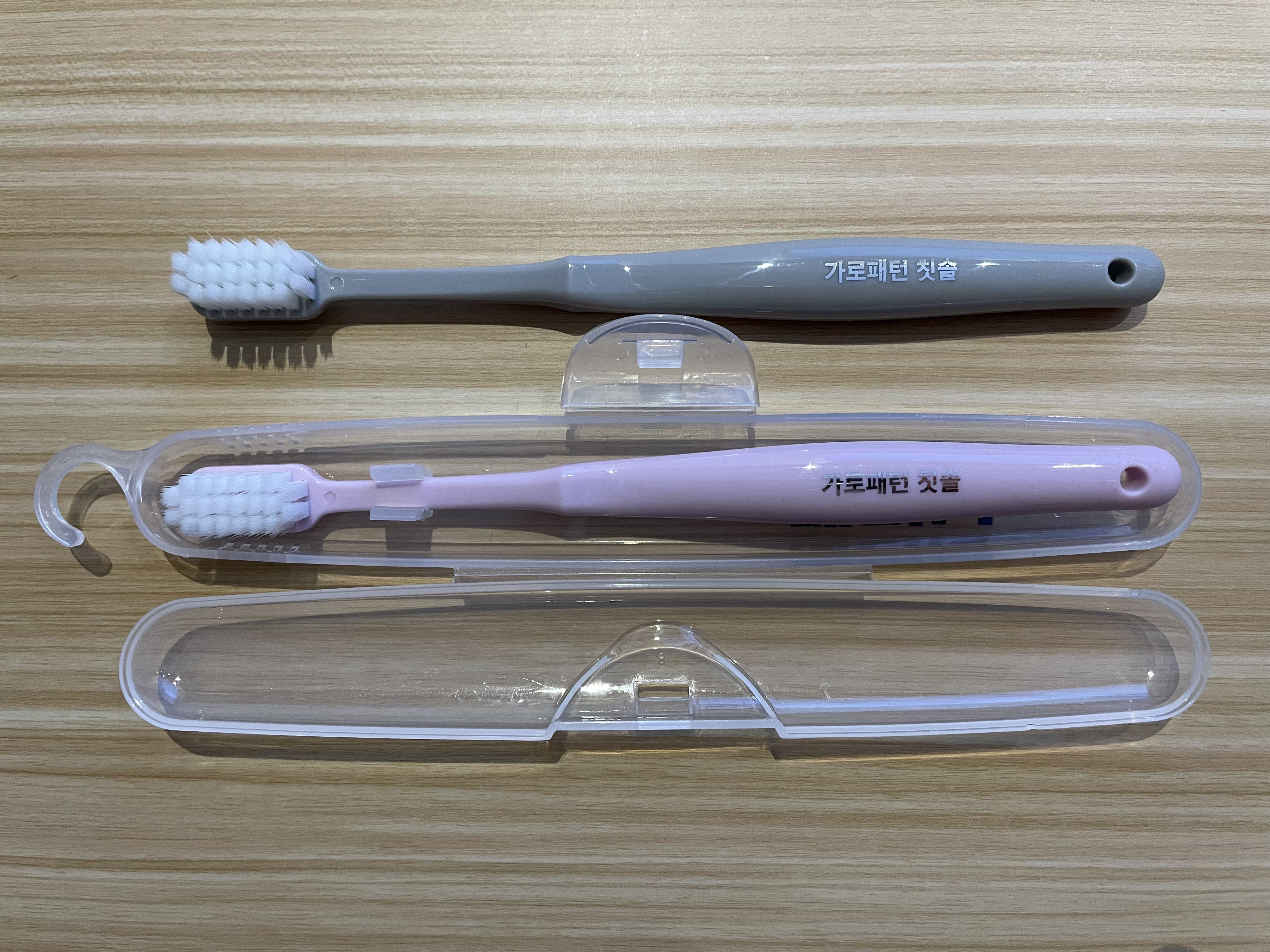 사은품으로 준 가로패턴 칫솔 4개랑 칫솔케이스 하나.