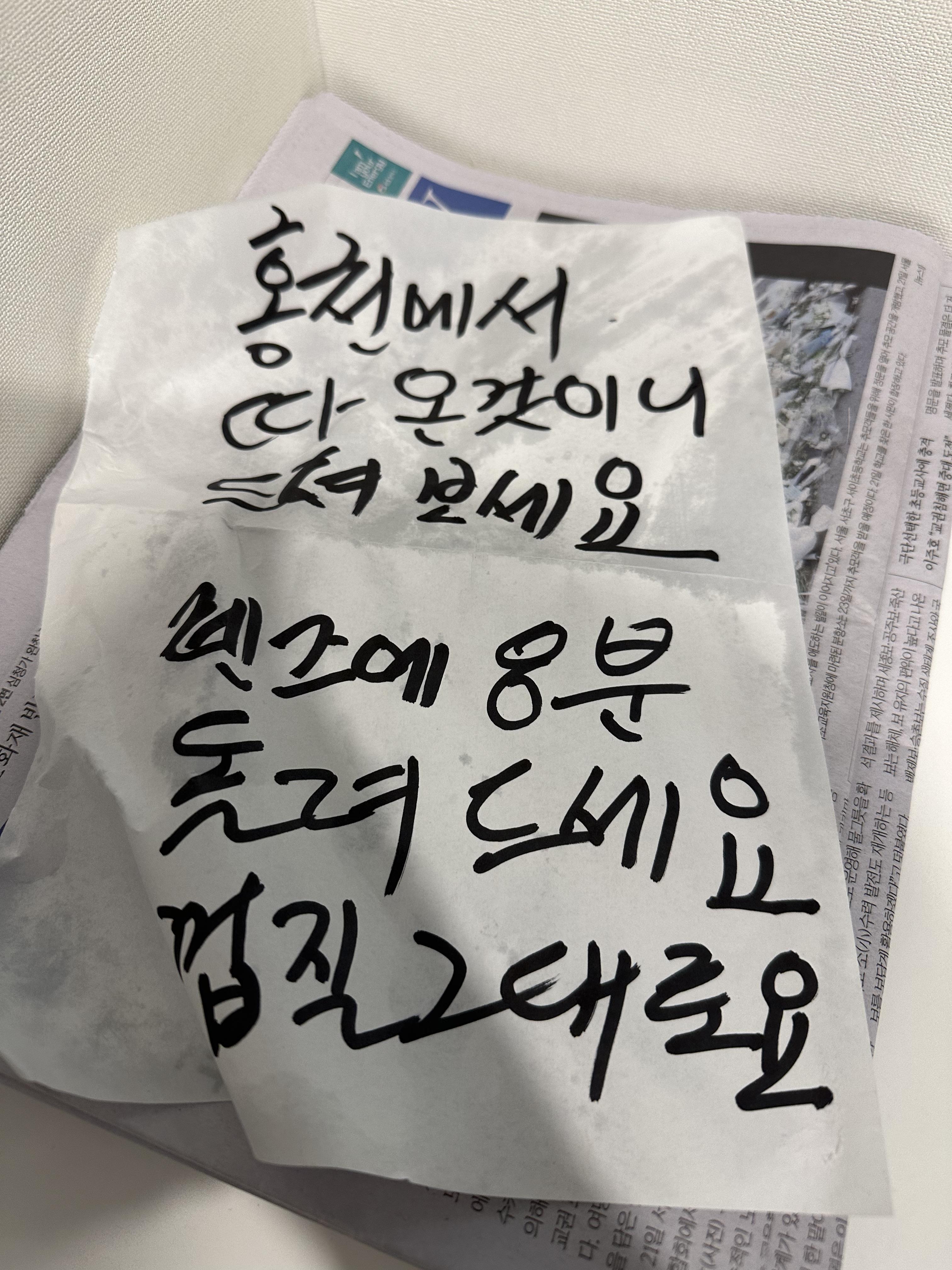 "홍천에서 따온 것이니 드셔보세요. 렌즈에 8분 돌려드세요 껍질 그대로요"