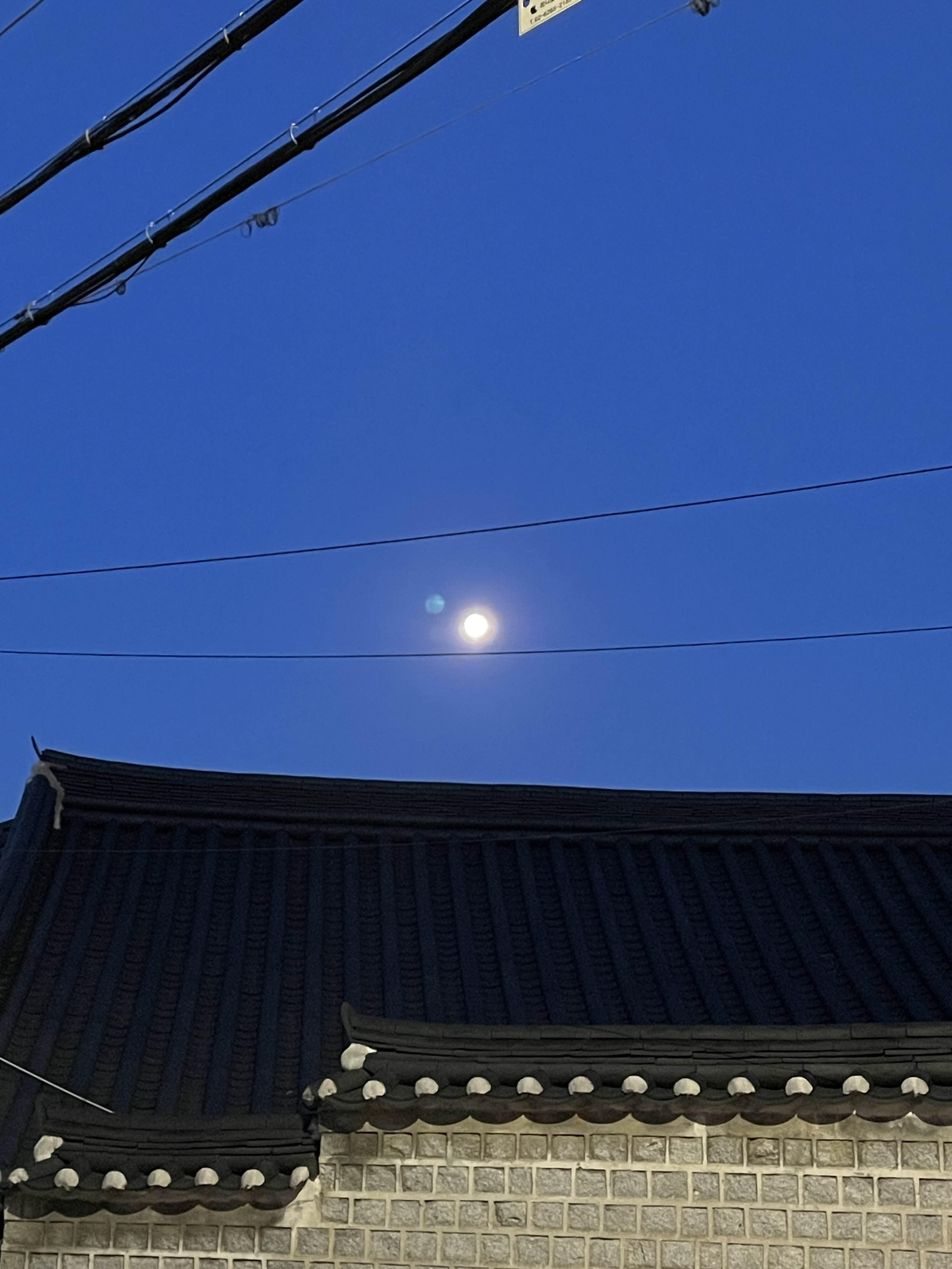 저녁에 보려니까 어디 있는지 못 찾겠던 달.