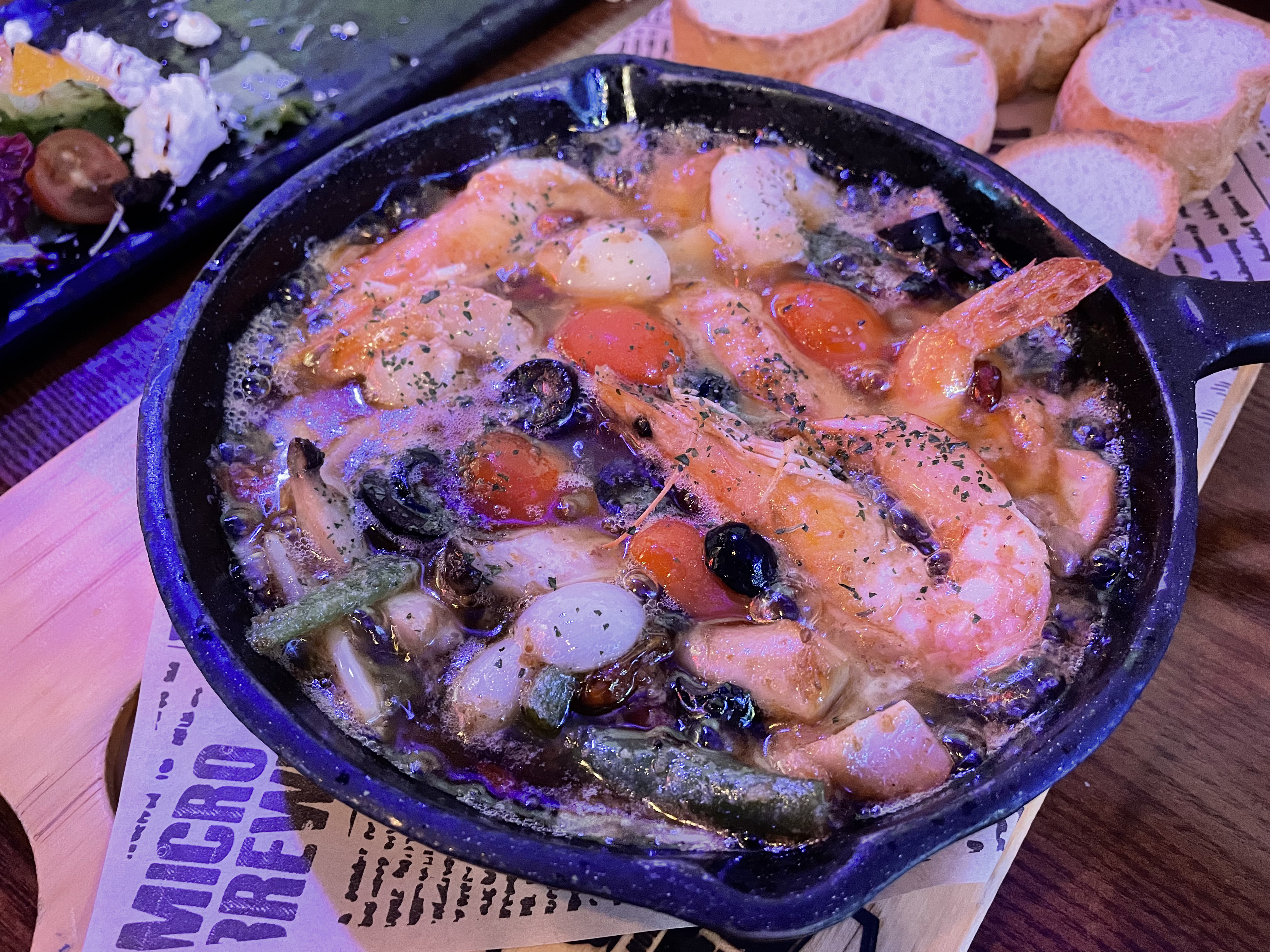 같이 나오는 바게트빵을 푹 찍어 새우 한 마리랑 마늘 얹어 같이 먹는다.