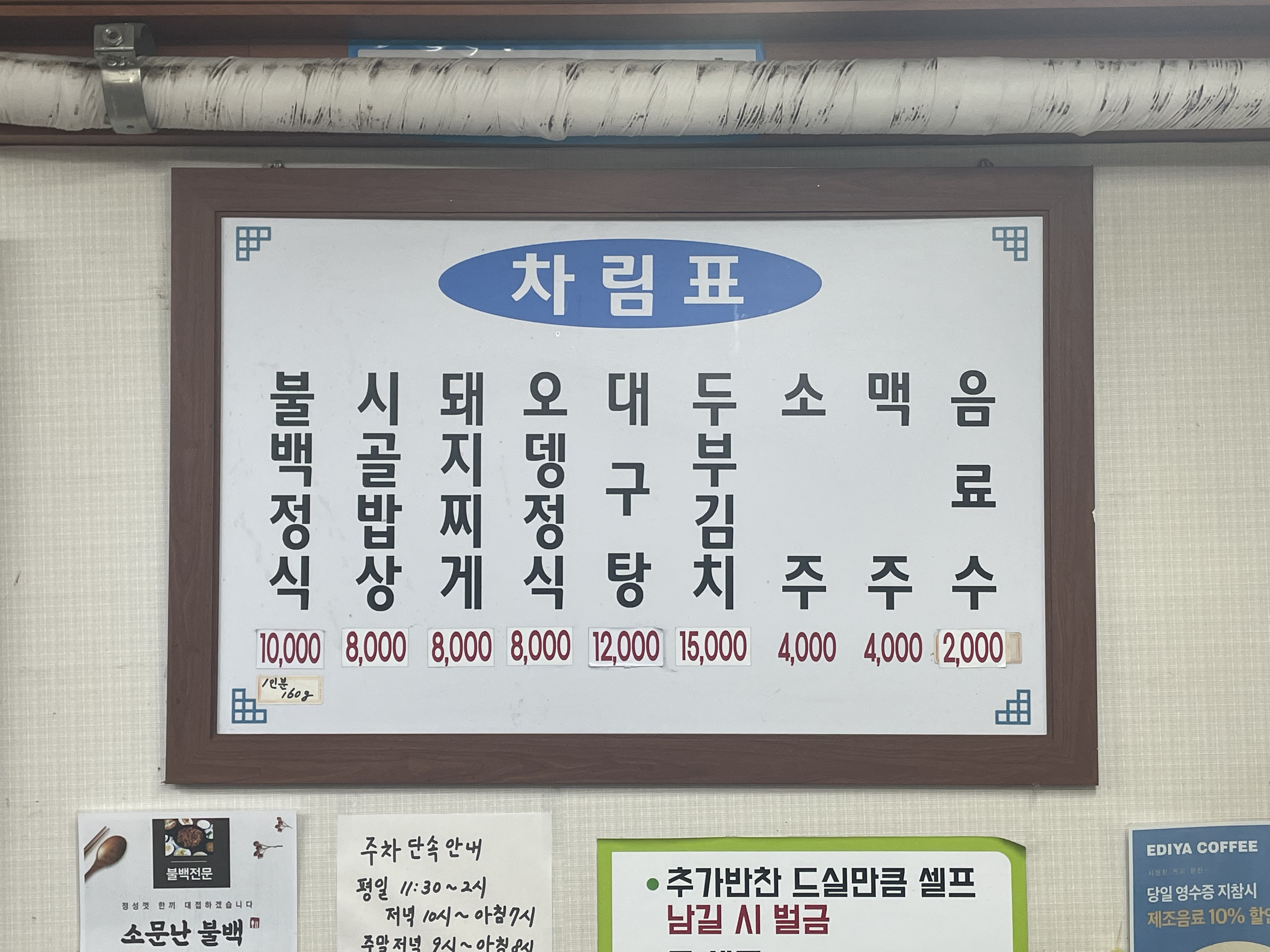 우리도 불백정식 2인분 주문했다.