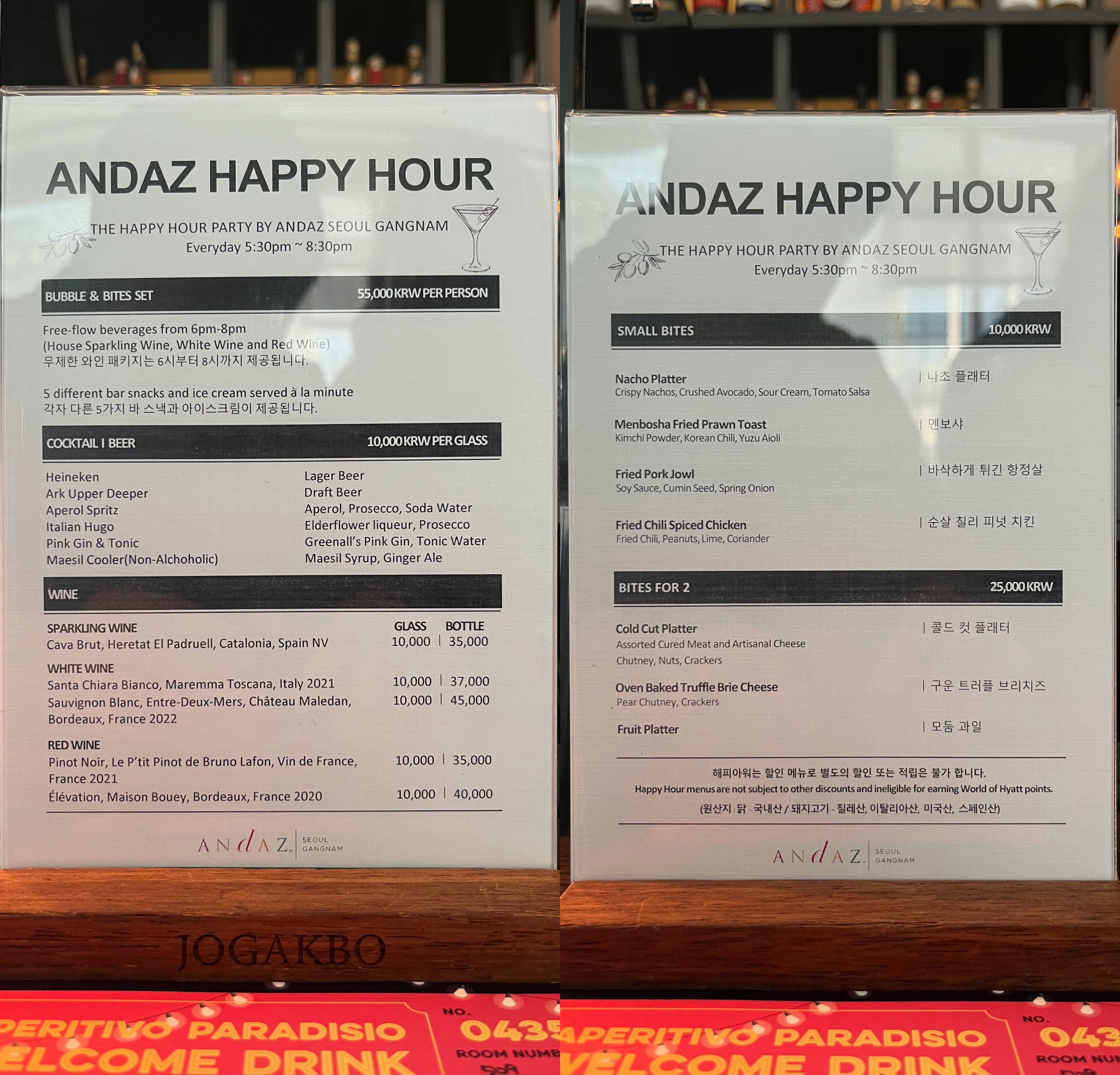 안다즈 서울 강남에는 하얏트 글로벌리스트를 위한 클럽라운지가 따로 없다.