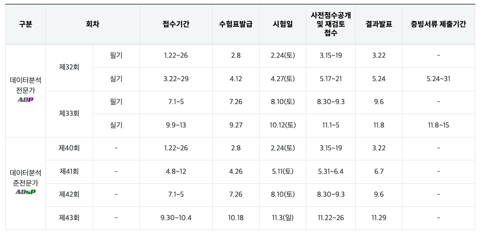 ADsP 데이터분석 준전문가 시험은 1년에 네 번 시험이 진행된다.