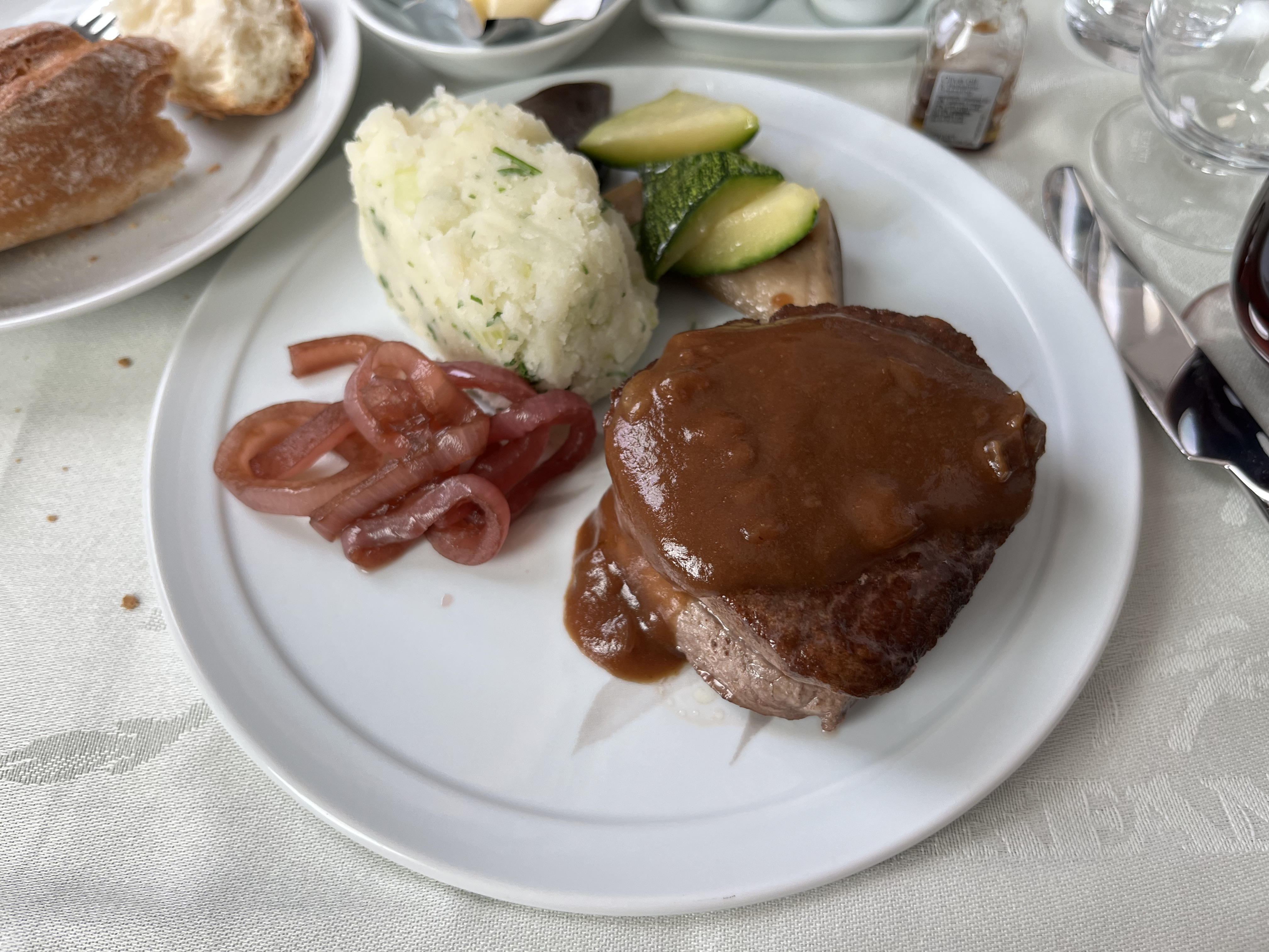 로즈마리 소스의 쇠고기 안심 스테이크.