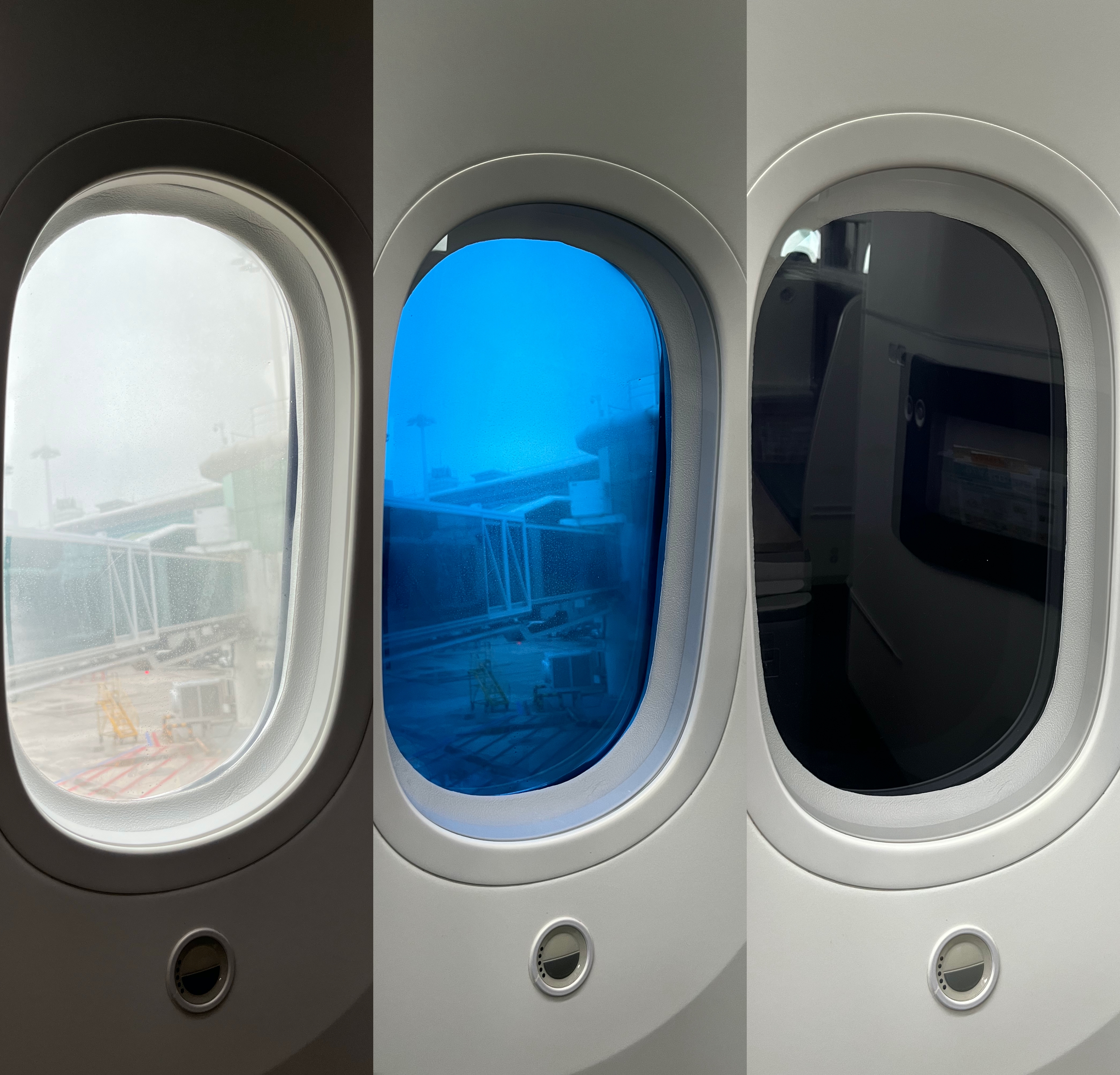 B787-9의 창문에는 햇빛가리개가 없었다.