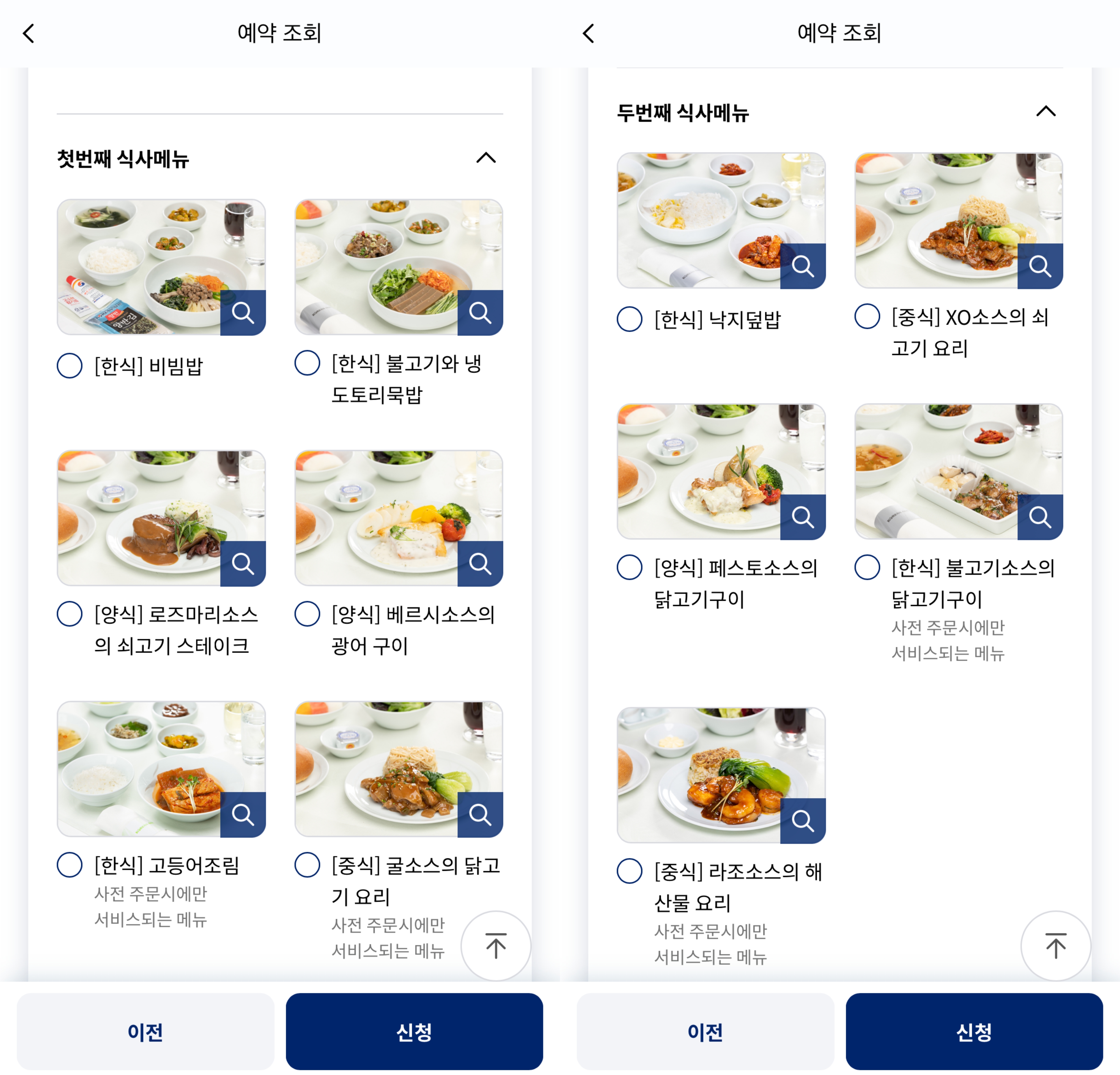 기내식 메뉴를 사전 신청할 수 있었다.