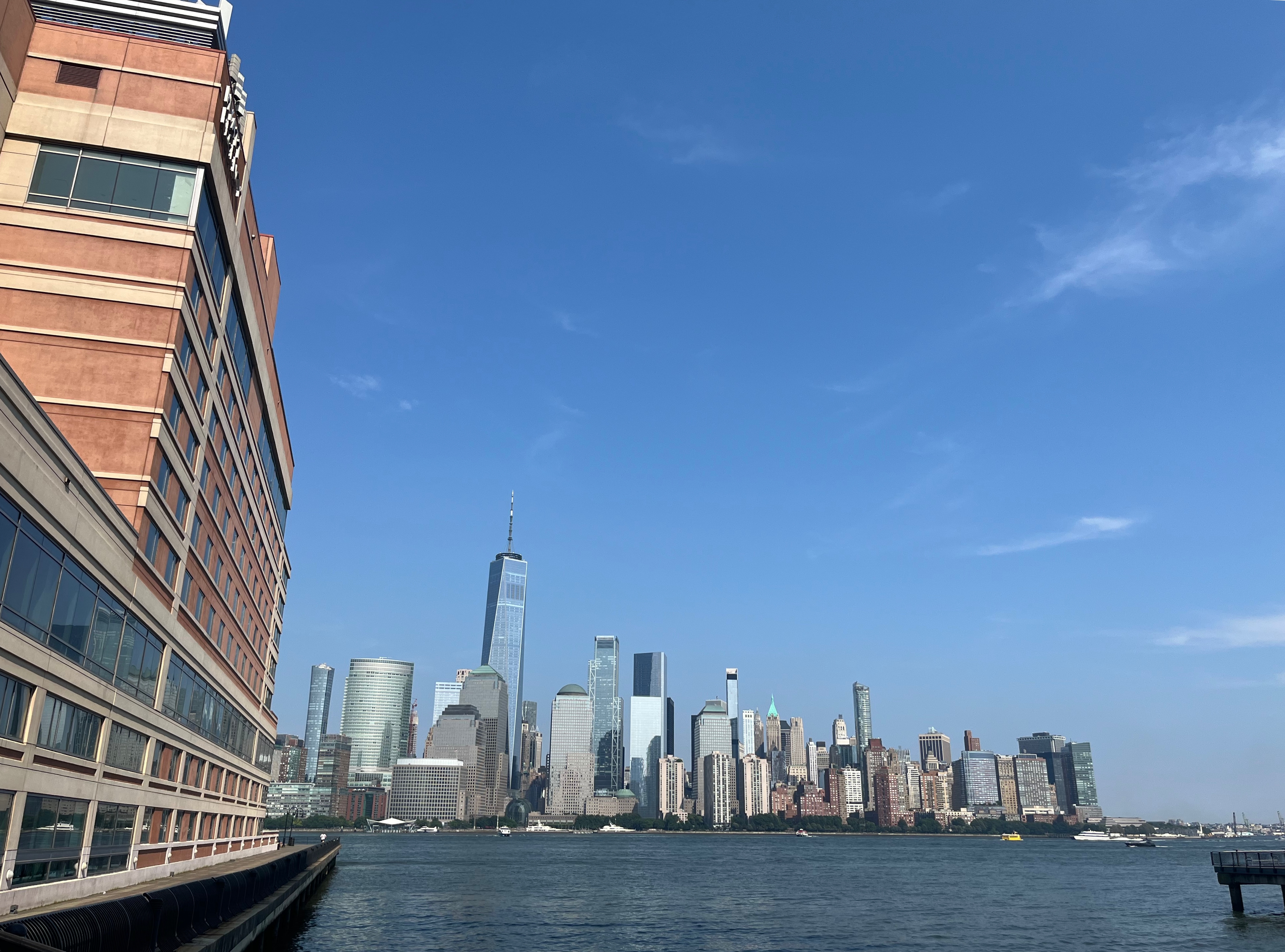 저 멀리 페리들 탈 수 있는 Paulus Hook이 보인다.