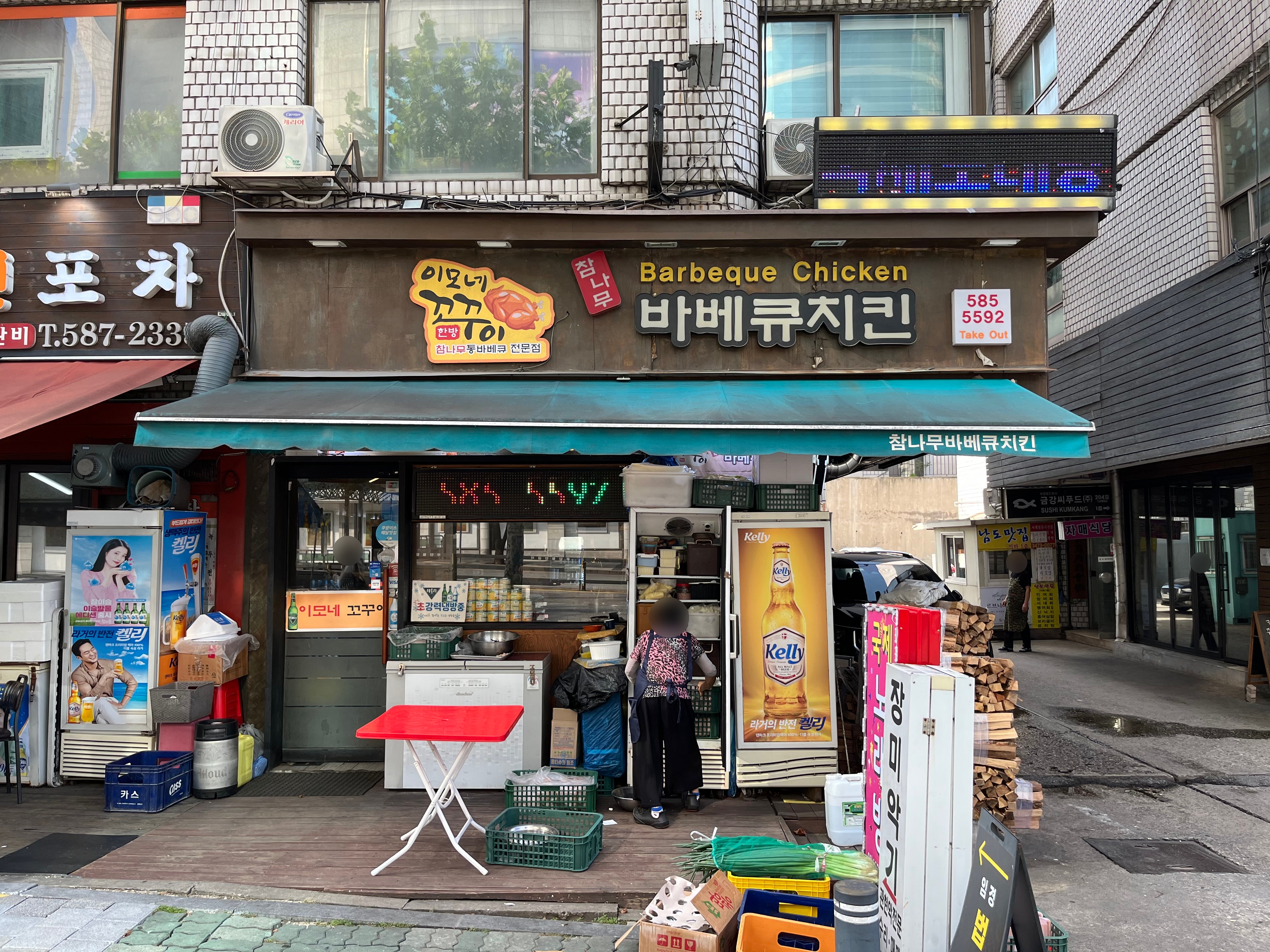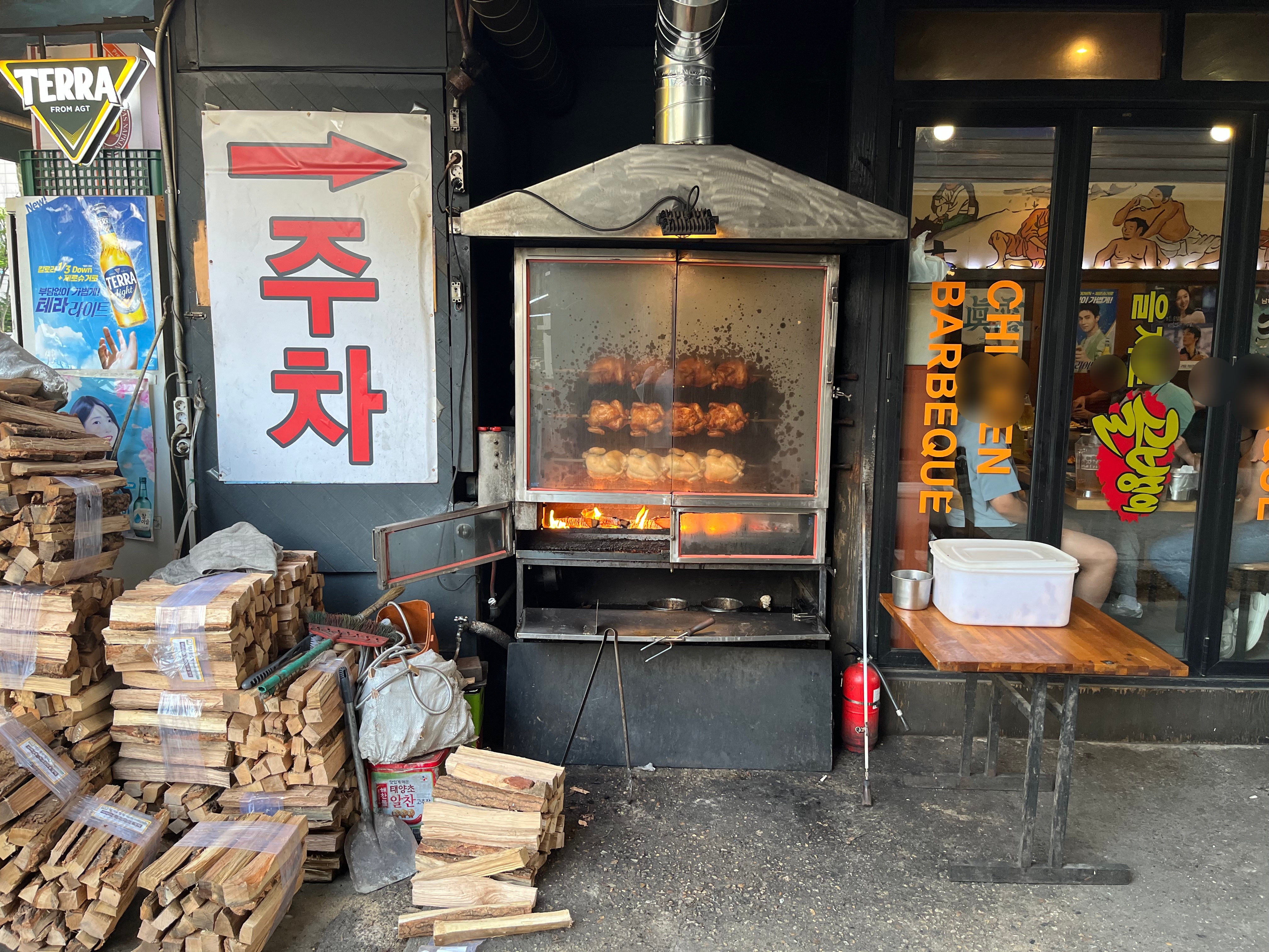가게 오른쪽에선 진짜 장작으로 통닭을 굽고 있었다.