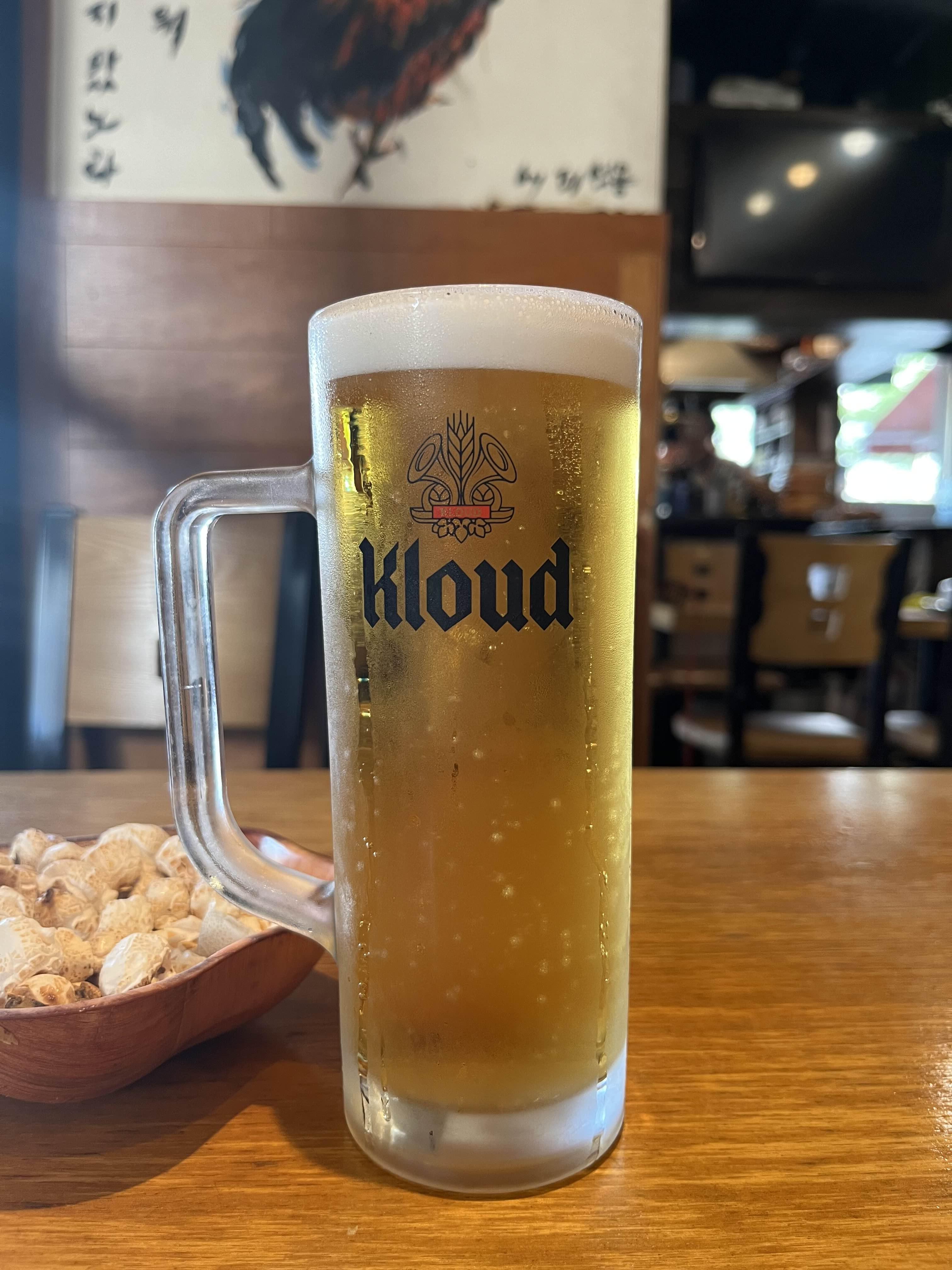 자리 잡고 앉자마자 시원한 생맥주부터 한잔 주문한다.