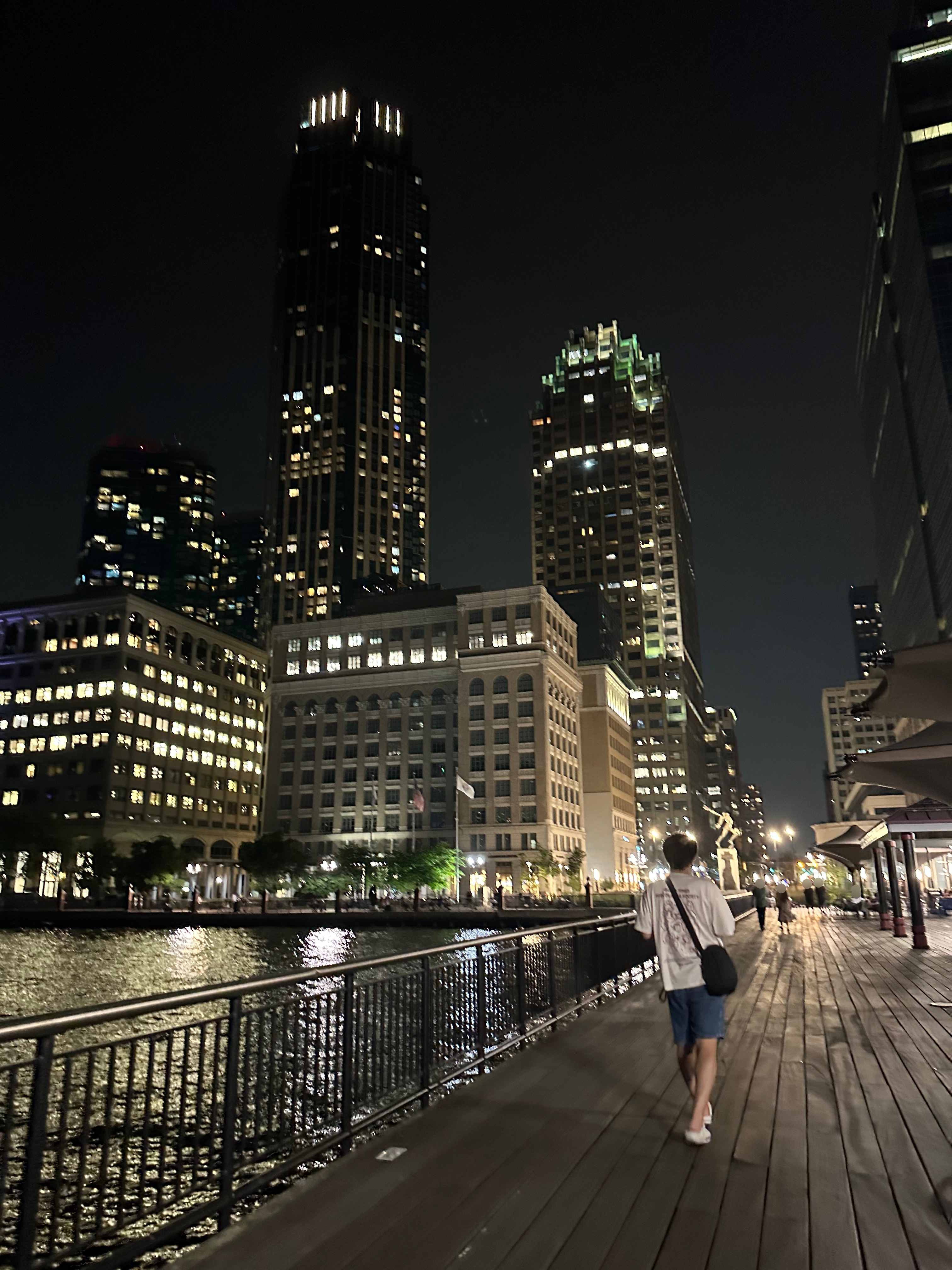 멋진 야경을 즐기며 허드슨강을 따라 걷는다.