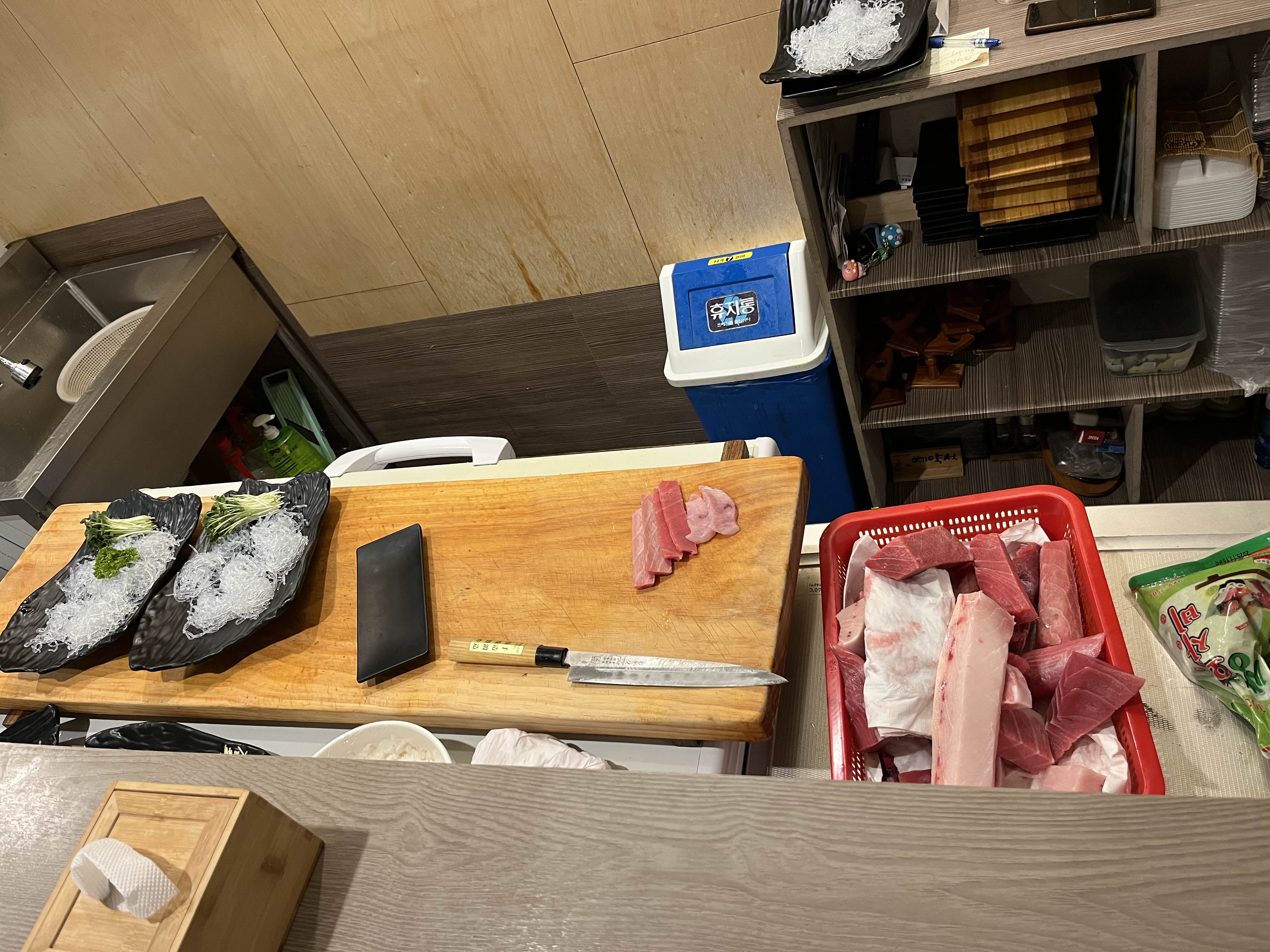 사장님 혼자서 정말 분주하게 참치회를 준비한다.