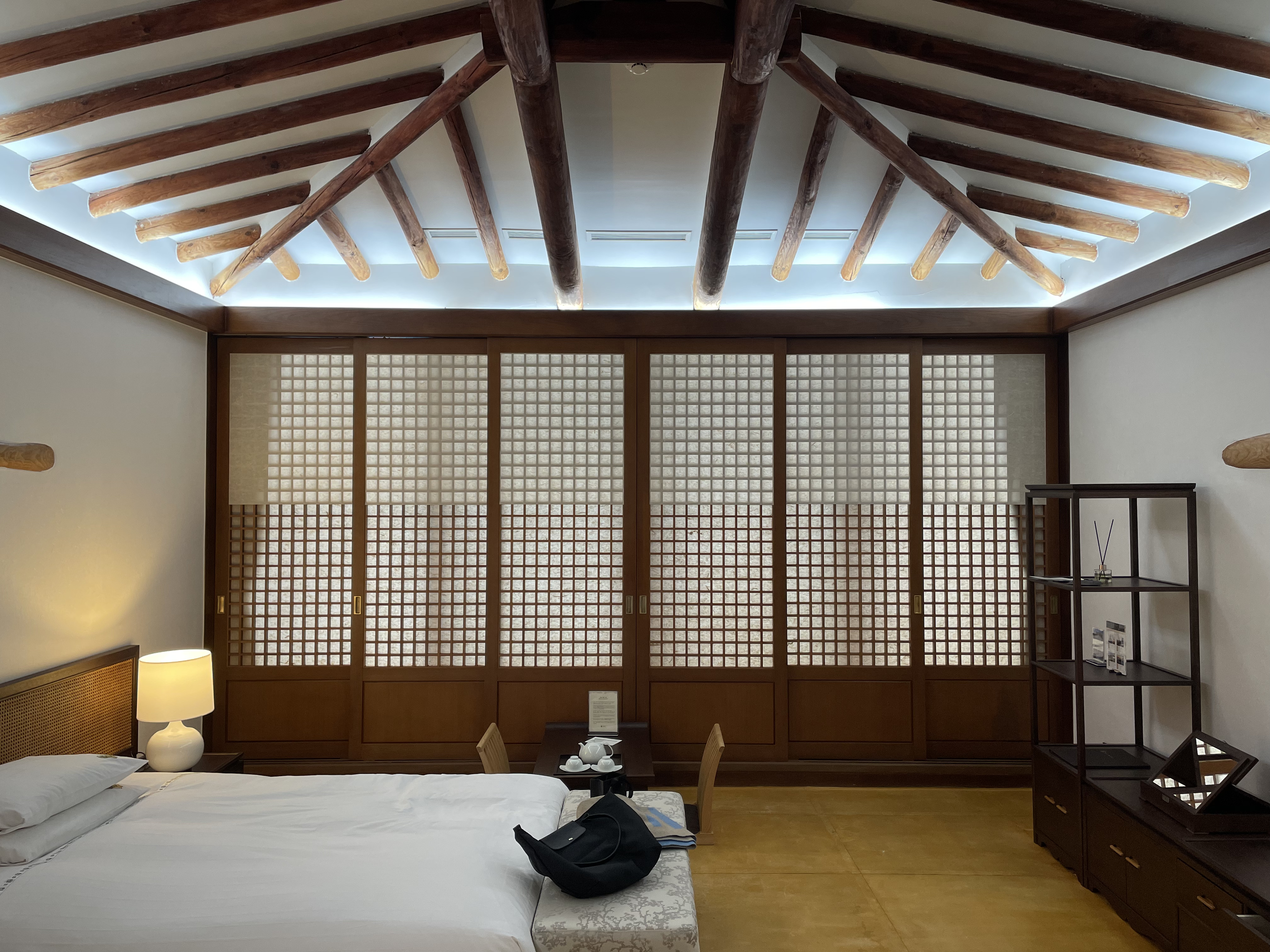 천정도, 문도, 가구들이나 소품, 문 열고 바라보는 풍경까지 옛 한옥의 멋을 잘 살렸다.