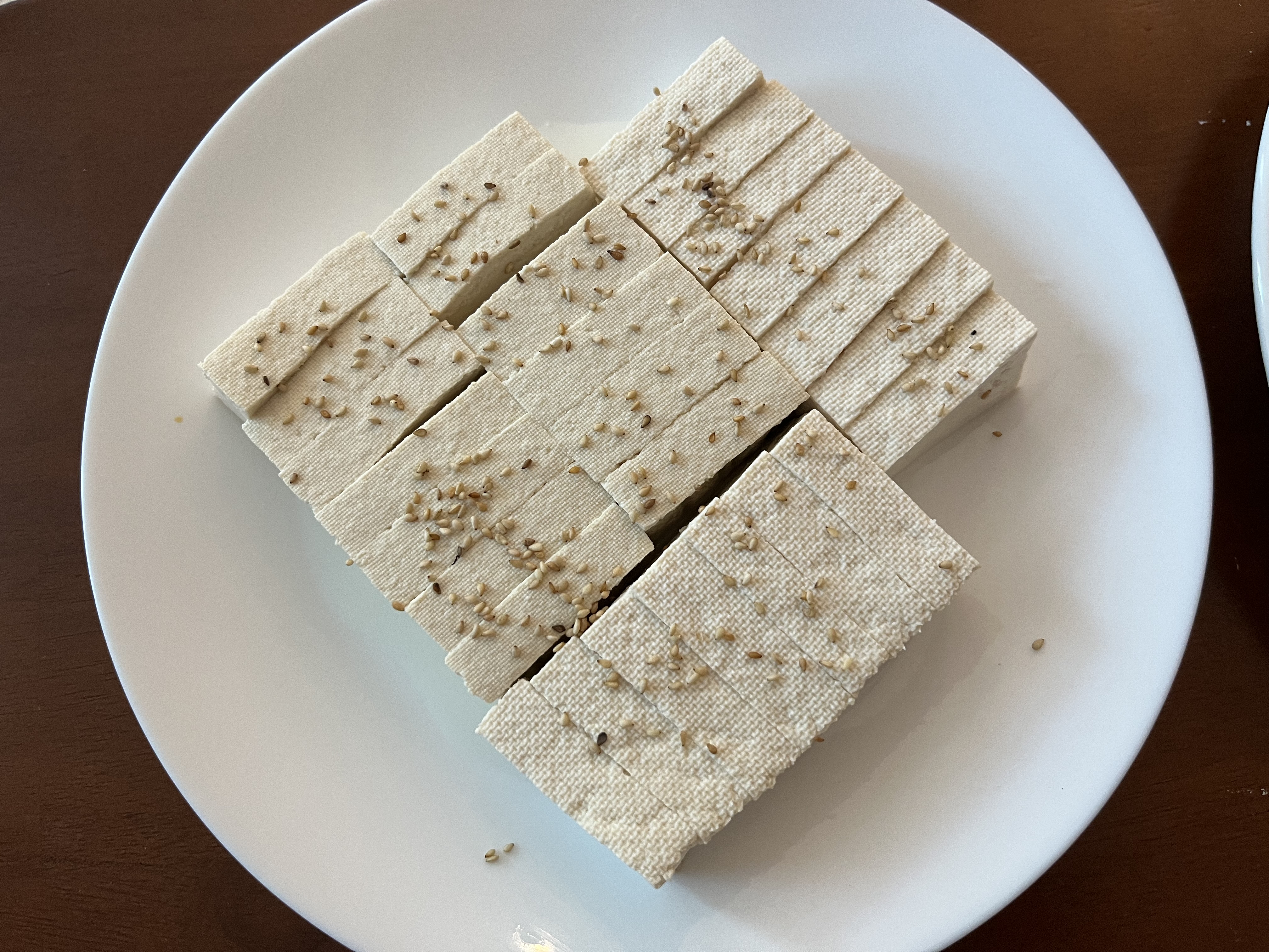 두부를 따뜻하게 데워 먹기 좋은 크기로 준비한다.