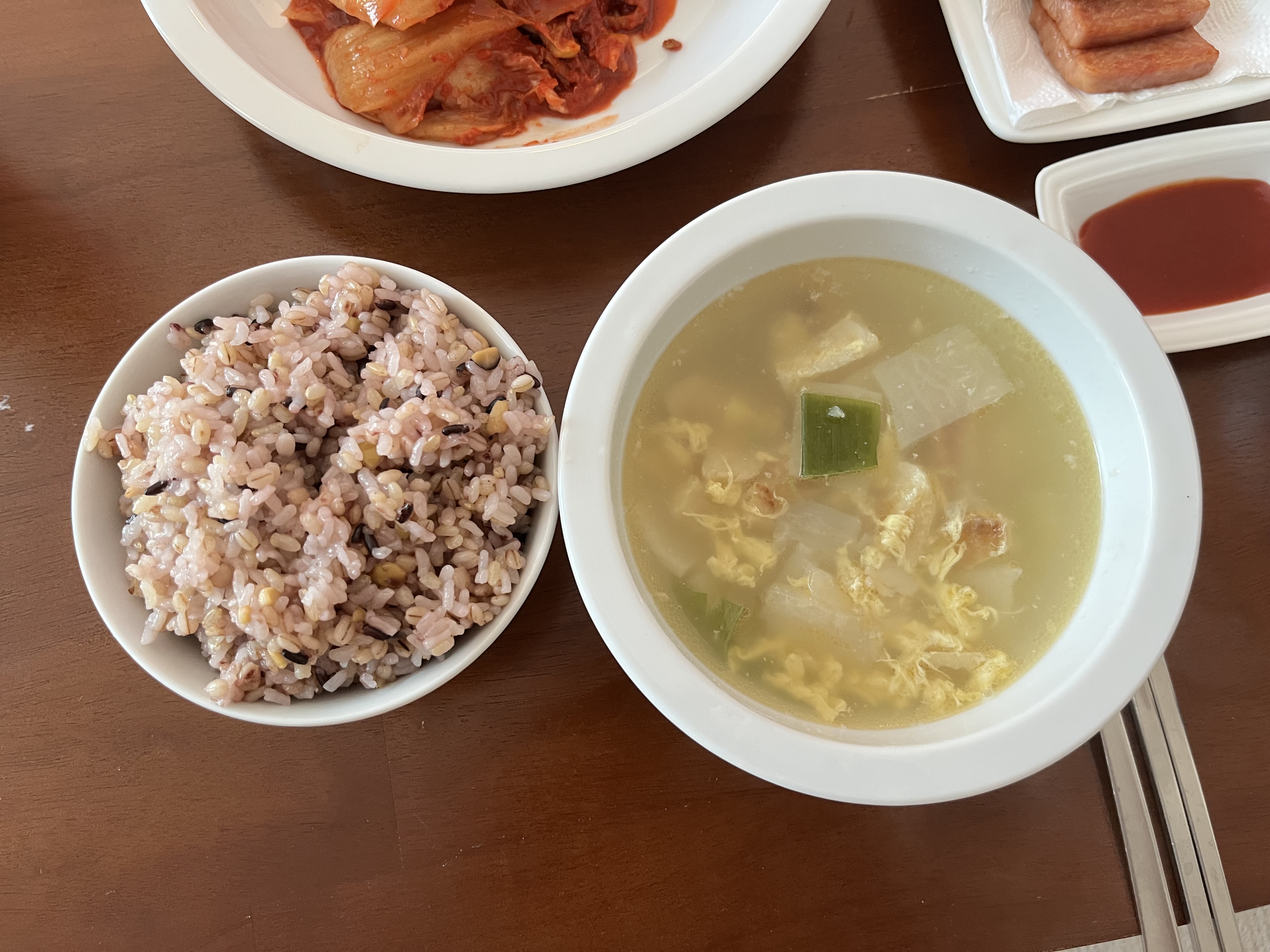 짝꿍이 해준 맛있는 새 밥과 북엇국.