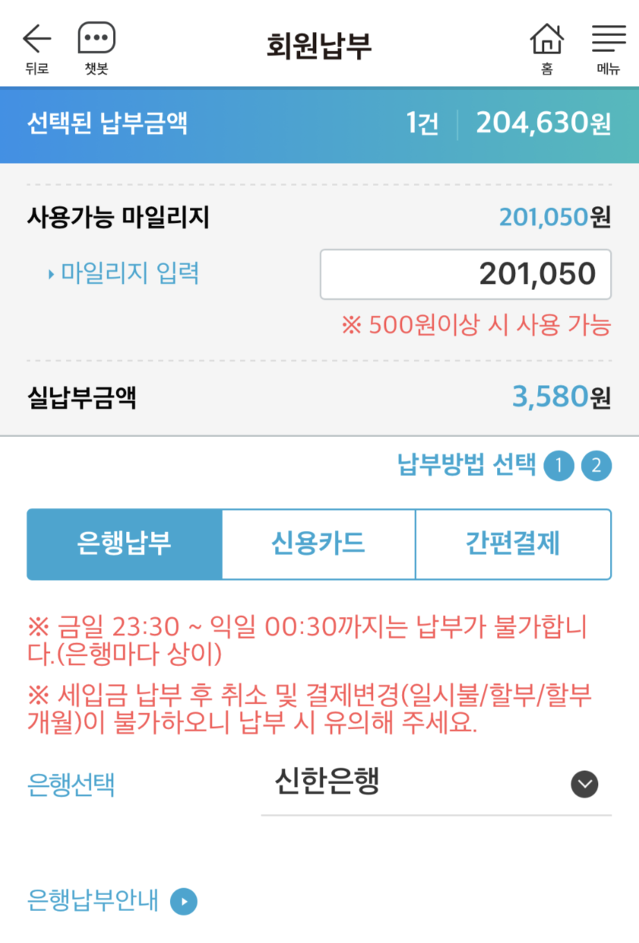 SSG머니를 마일리지로 바꾼 다음 적용하고, 나머지를 카드나 은행 결제한다.