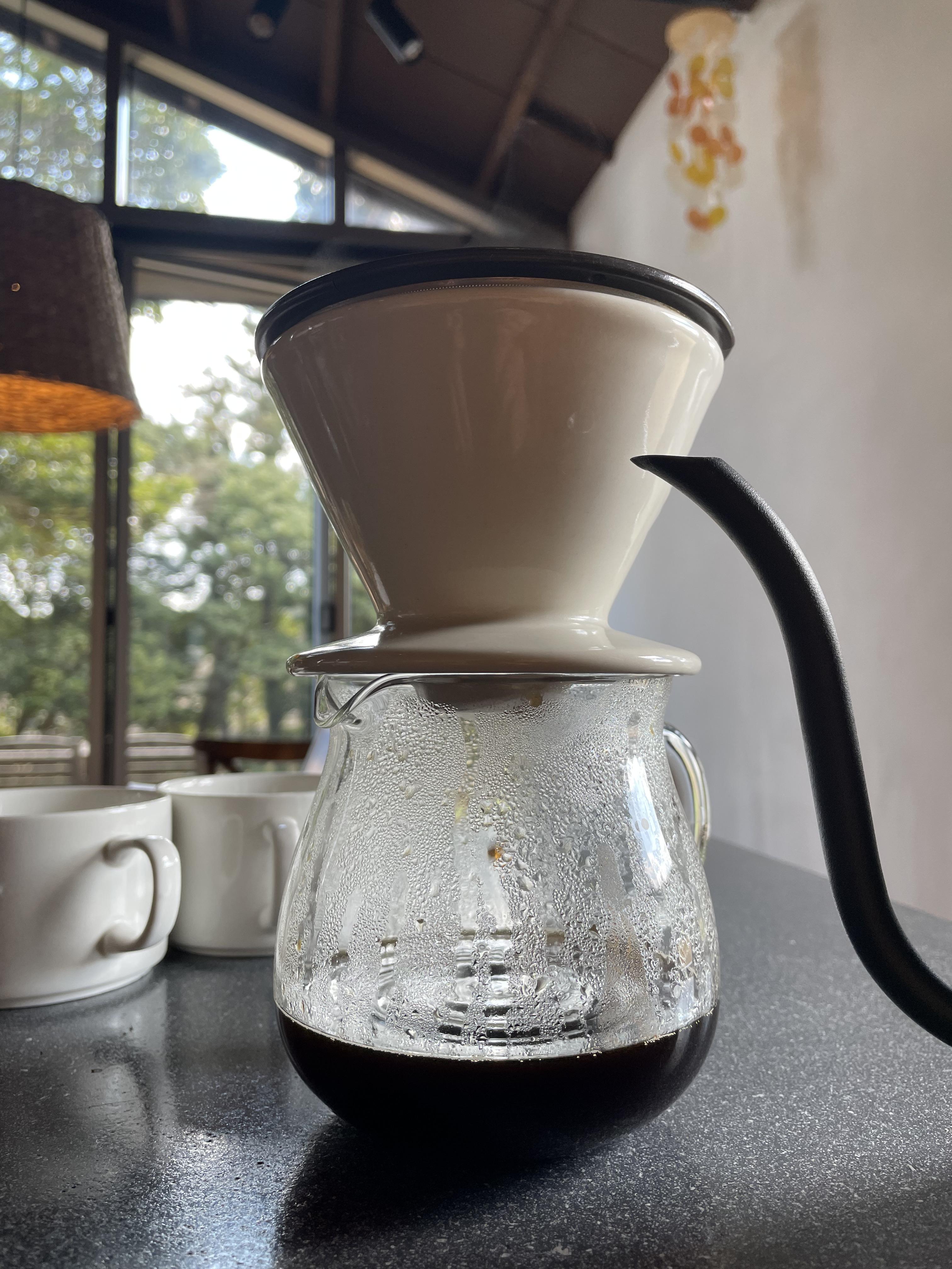 한 방울 한 방울씩 커피가 주전자로 내려온다.