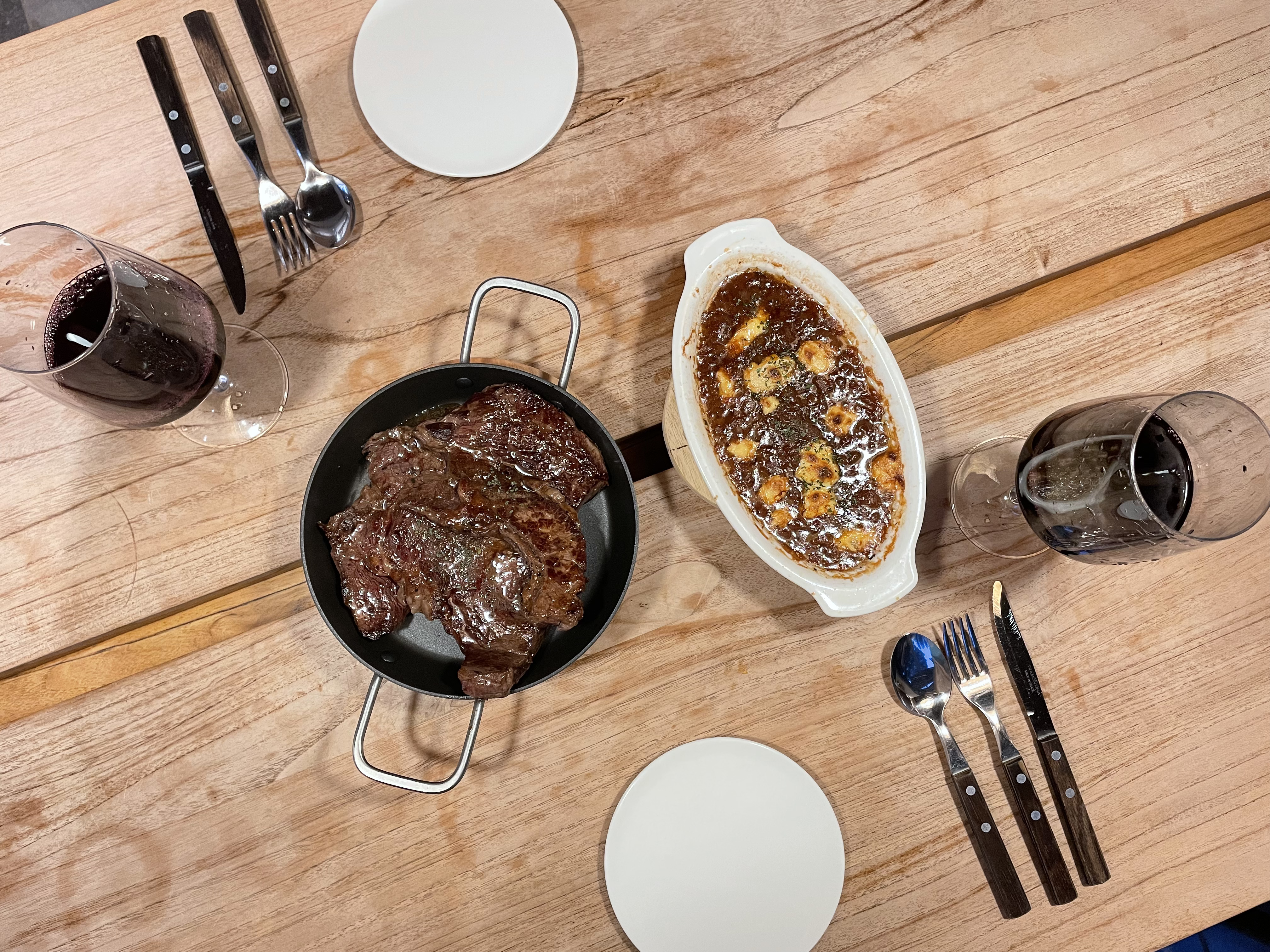 오늘은 두툼한 등심 스테이크로 준비했다.