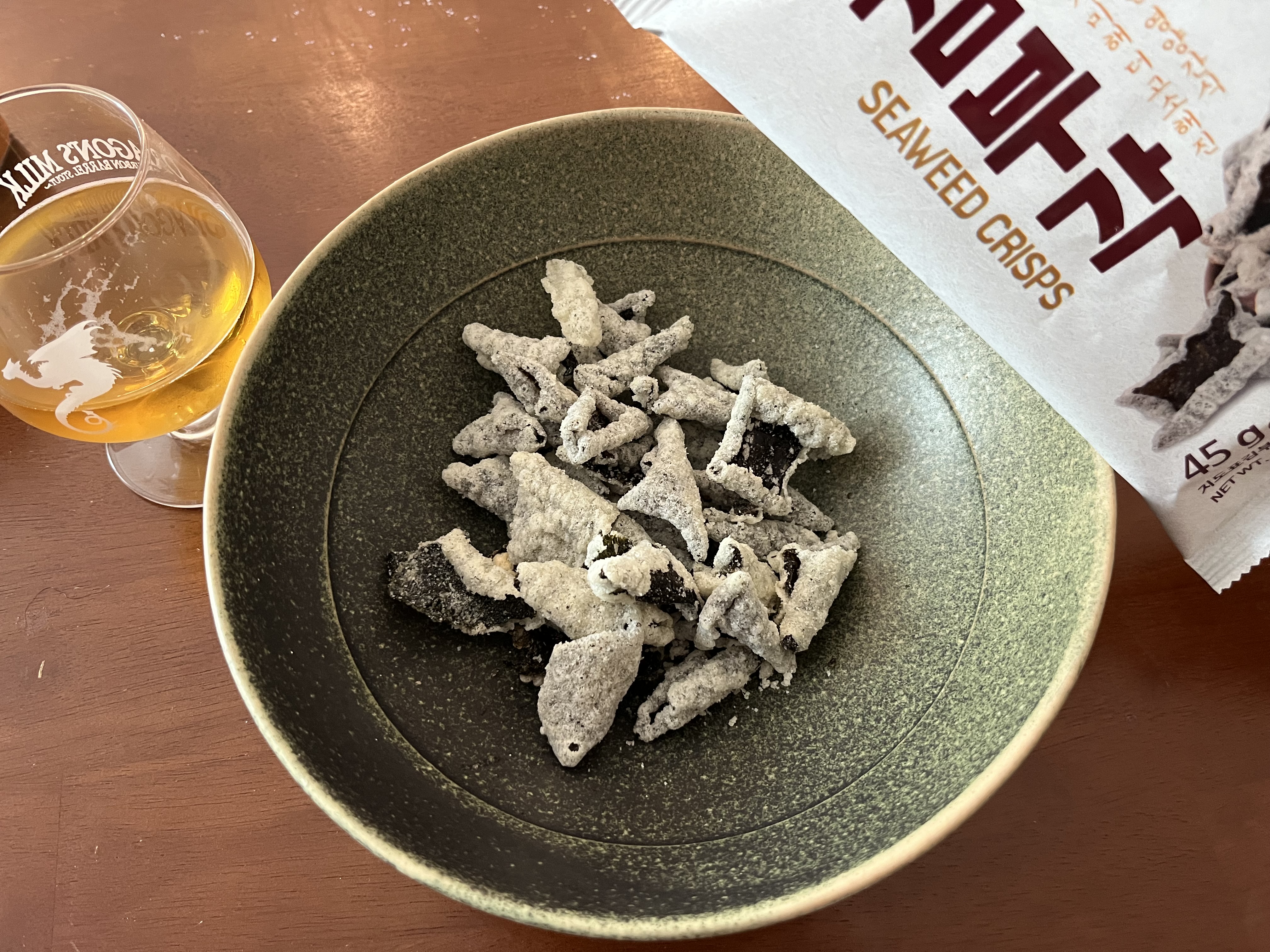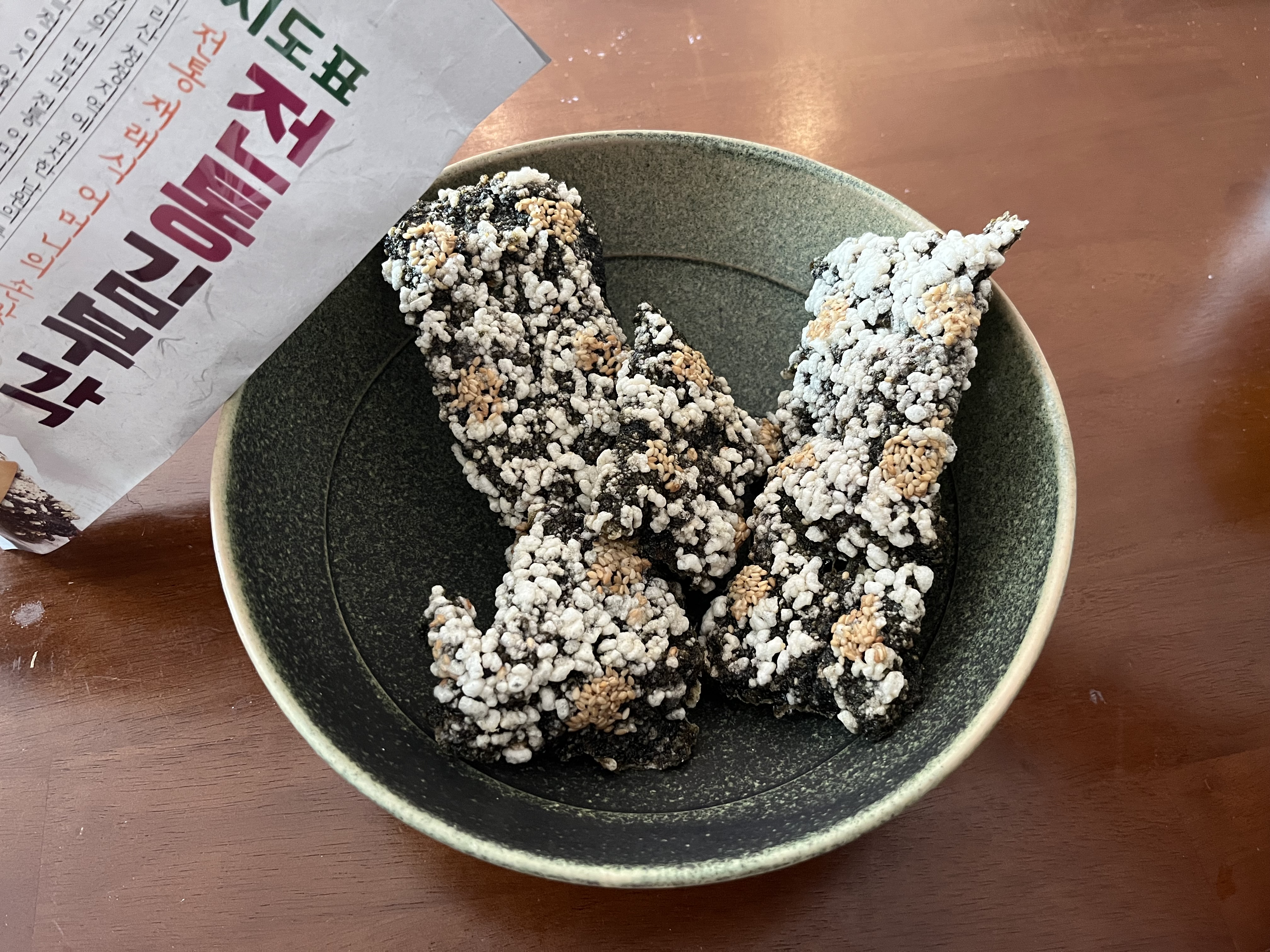 김부각을 과자처럼 먹을 수 있게 조금 개량한 느낌.